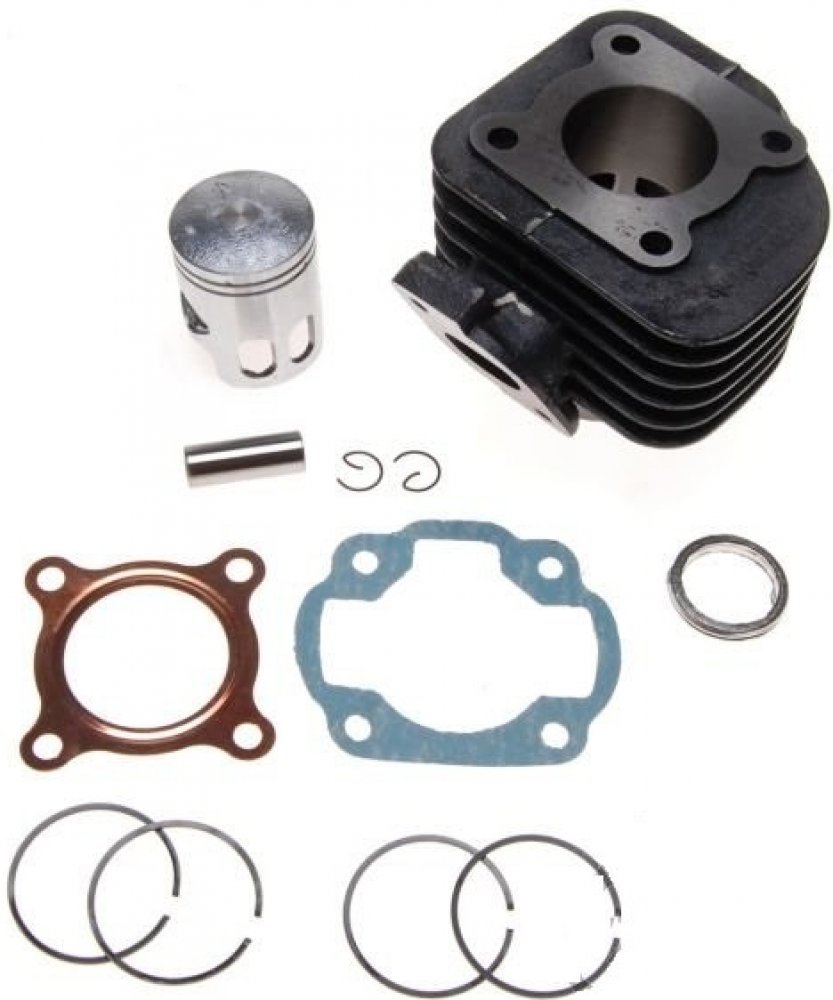 sada obsahuje : válec , píst , 2 x sadu kroužků ,pístní čep , segrovky čepu ,těsnění pod válec , pod hlavu a výfuku