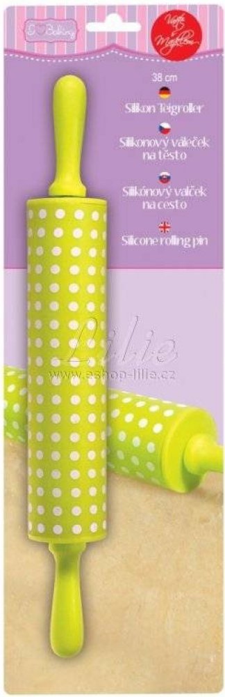 Váleček na potahovací hmotu. Délka 30,5 cm, zelená barva.