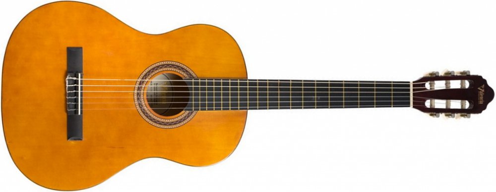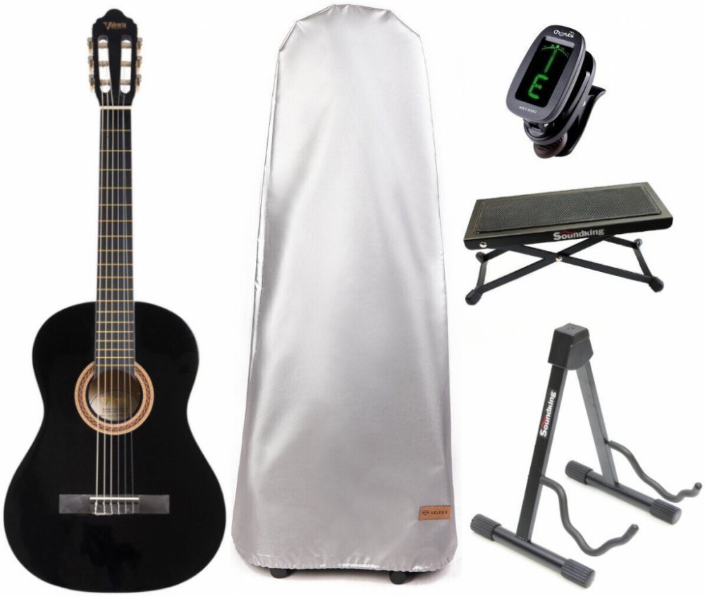 Klasická kytara standardní velikosti 4/4 určená především pro začátečníky a děti od 12 let. Vrchní deska nástroje je vyrobena z lípy, luby a zadní deska ze stejné dřeviny jako rezonanční deska. Javorový krk s menzurou 650mm, je osazen ebonizovaným hmatníkem s 19 mosaznými pražci. O ladění a intonaci se stará ebonizovaná kobylka s plastovým struníkem, plastový nultý pražec a standardní poniklovaná mechanika. Tělo i krk funkce jsou potaženy černým lemováním a vyhotovené v lesklém laku. Barevné provedení: Black