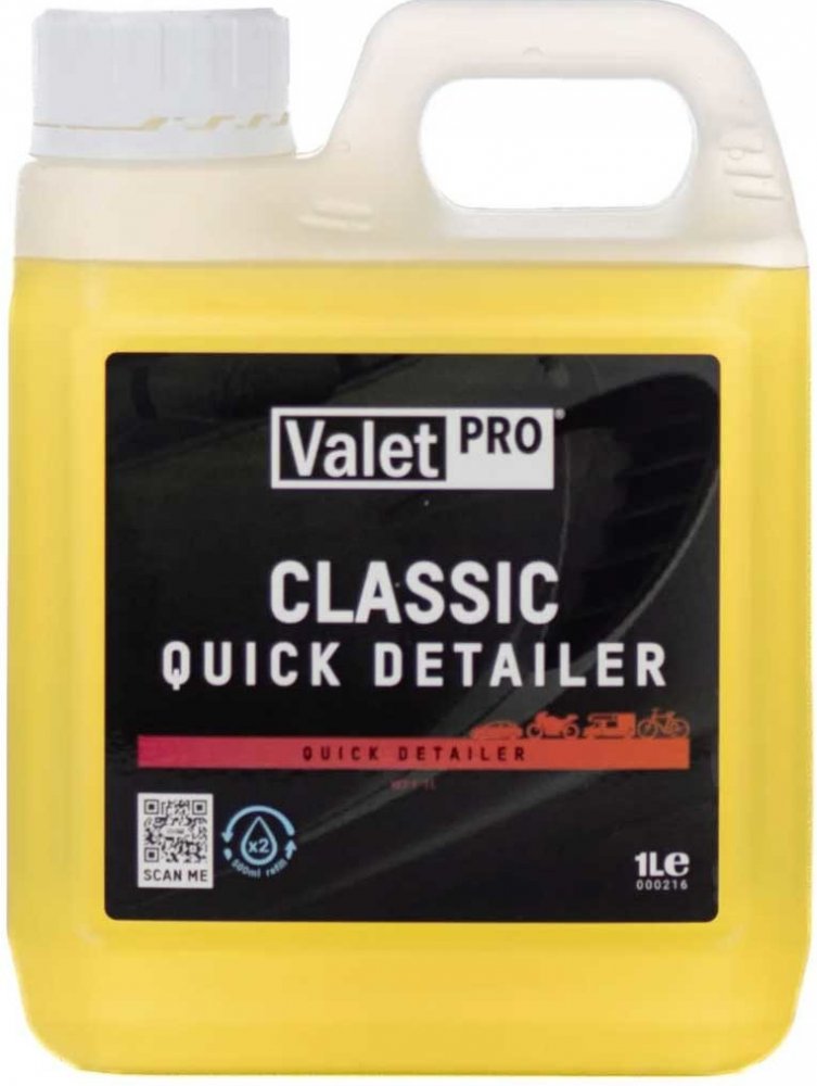 ValetPro Classic Quick Detailer (1 L) je finální detailer pro snadné odstranění šmouh, otisků prstů či skvrn po vodě.. Classic Quick Detailer, vaše ideální řešení pro bezproblémovou údržbu laku vašeho vozidla. Pečlivě vytvořený přípravek s několika střiky zvyšuje lesk a dodává ochranný kluzký povrch, čímž udržuje prach na uzdě a zároveň bez námahy odstraňuje šmouhy, otisky prstů a skvrny od vody. ...