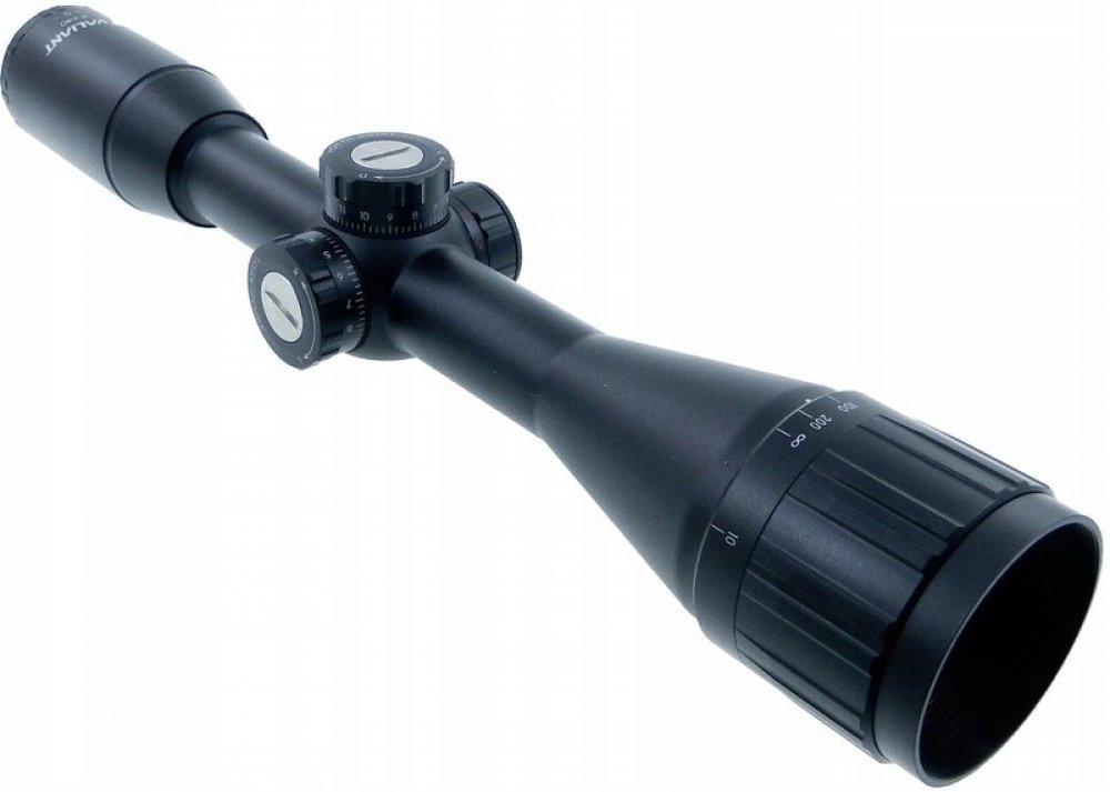 Valiant Lynx základní řada kvalitních puškohledů Valiant s pevným přiblížením, paralaxou na objektivu a podsvětleným kovovým křížem typu 24x Mil-Dot.