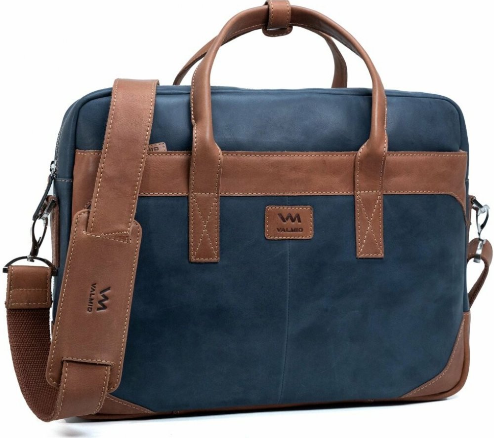 Elegantní pánská taška na notebook z pravé přírodní kůže. Kombinace modré a hnědé barvy dodává modelu jedinečný styl.