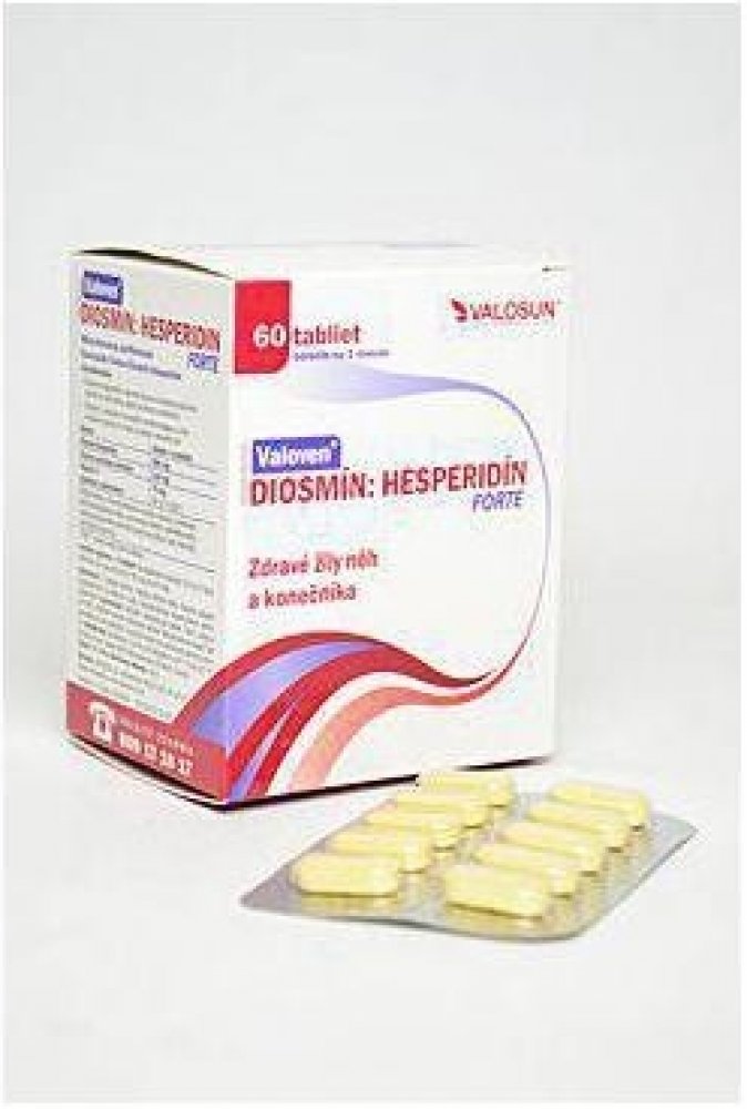 Diosmin hesperidin je mikronizovaná purifikovaná flavonoidní frakce obsahující 90% mikronizovaného diosminu a 10% flavonoidů vyjádřených jako hesperidin. Tyto dva rostlinné flavonoidy zvyšují žilní tonus a odolnost cév, pozitivně ovlivňují lymfatický systém a snižují kapilární hyperpermeabilitu propustnost a lomivost.1-2