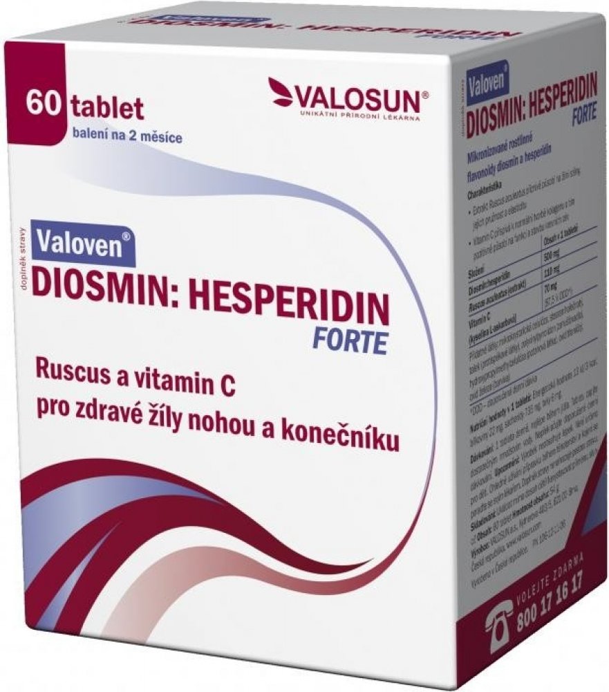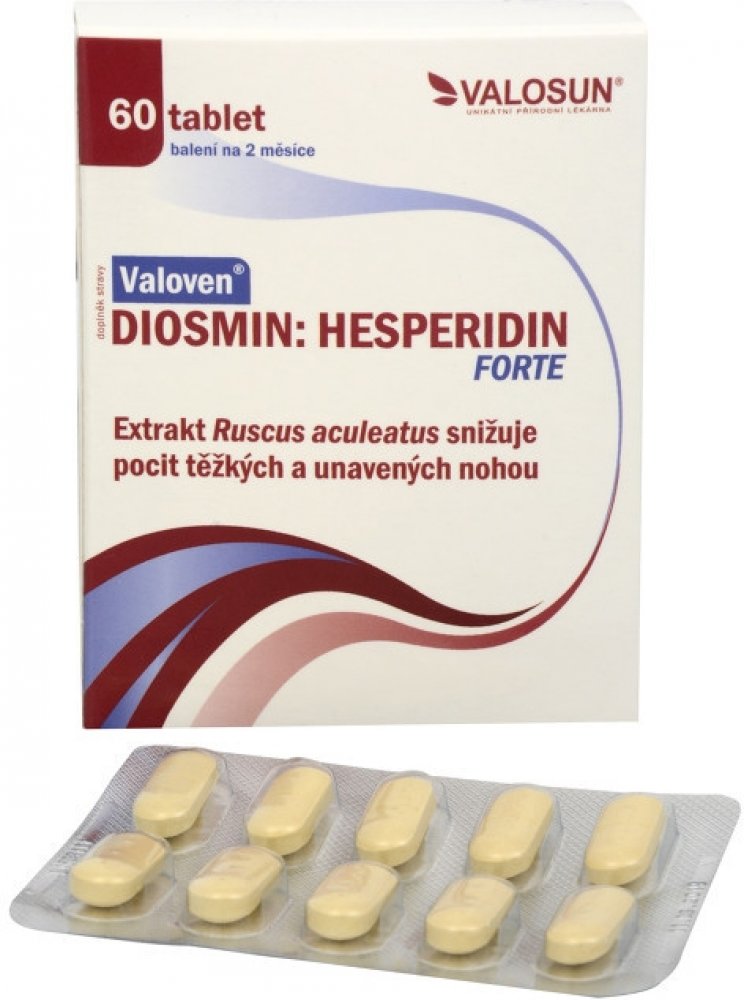 Přírodní přípravek Valoven DIOSMIN HESPERIDIN FORTE obsahuje dvě hlavní účinné složky, diosmin hesperidin a extrakt listnatce bodlinatého Ruscus aculeatus, které jsou již po staletí používány při projevech chronické žilní nedostatečnosti jako jsou pocity únavy a těžkých nohou, otoky a křeče dolních končetin, křečové žíly.