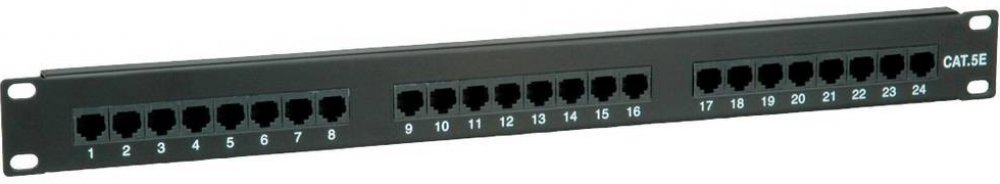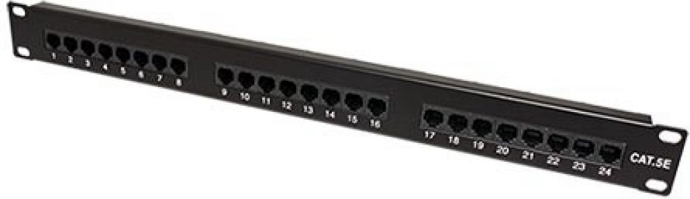 Nestíněný, 24-portový patchpanel kategorie 5e pro montáž na 19" rack; Konektory: 24x RJ45F; Standardy: T568A, T568B; Barva: černá; Rozměry: 482 x 44 x 29mm; Použití: patchpanel pro strukturovanou kabeláž kat. 5e; Balení: patchpanel, 4x plastový třmen pro organizaci kabelů(11 x 30mm); Druh obalu: papírová krabice.