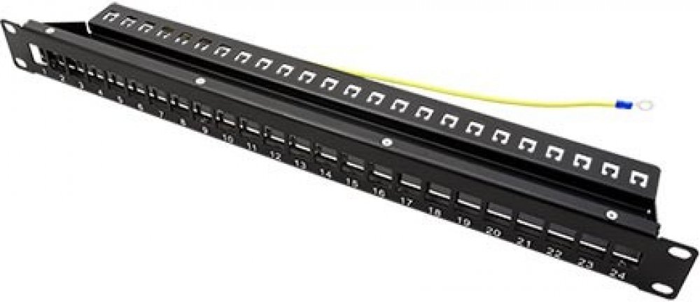 Použití: Stíněný patchpanel (možno osadit i nestíněné moduly, ale bez funkčnosti uzemnění) určený pro montáž do 19" rozvaděče. Umožňuje osadit do rozvaděče potřebné množství Keystone modulů - jednoduchá možnost přidání dalšího modulu, nebo výměny již osazeného.;