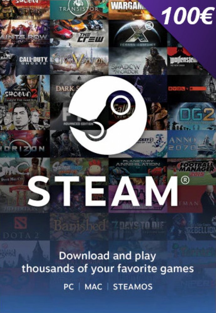 Dárková karta Steam je digitální dárková karta, která má určitou hodnotu a po jejím uplatnění se převede na váš účet ve službě Steam Wallet. Umožňuje vám nakupovat v obchodě služby Steam. Dárková karta Steam 100 Eur převede 100 eur přímo na váš účet služby Steam, takže si můžete koupit, cokoli si budete přát z nabídky herního obsahu služby Steam! Taková částka vám umožní nakoupit poměrně velké mno...