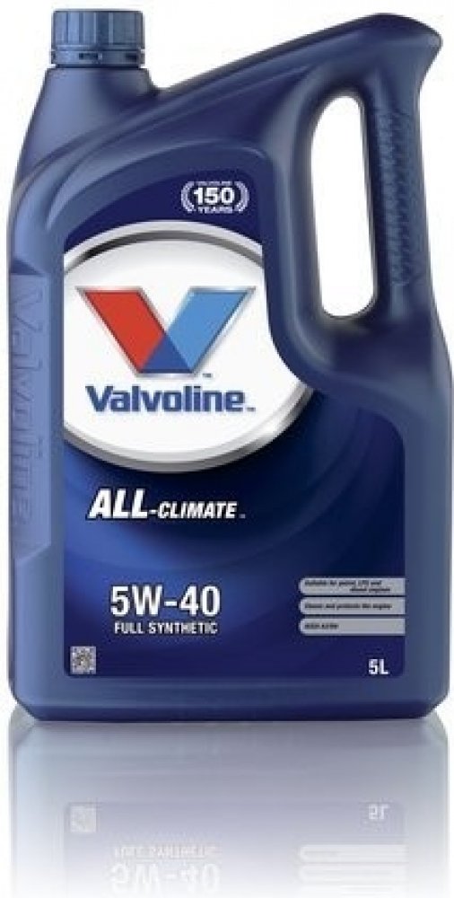 Valvoline All Climate 5W-40 5 l Vysoce kvalitní plně syntetický motorový olej. Vyroben pro celoroční provoz. Osvědčená a důvěryhodná technologie pro širokou škálu naftových, benzínových a LPG motorů. Pro moderní motory s přeplňováním, katalyzátory a prodlouženým intervalem výměny oleje. ACEA: A3/B3, A3/B4; API: SN/CF; MB-229.3; Renault RN0700/RN0710; VW 50200/50500; GM LL-A-025, GM LL-B-025