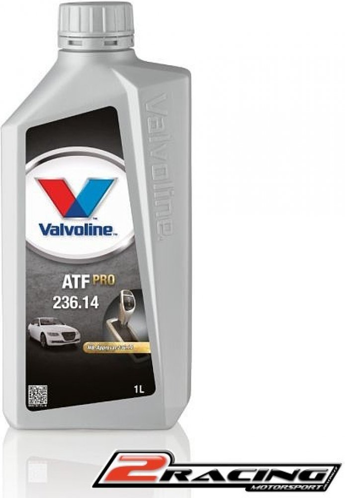 Valvoline ATF Pro 236.14 1 l Prvotřídní plně syntetický vysoko-zátěžový převodový olej pro automatické převodovky osobních automobilů, dodávek, LCV a SUV. Valvoline ATF Pro 236.14 poskytuje vynikající ochranu a mazání automatické převodovky v širokém rozsahu teplot. Vlastnosti a přínosy: - Výjimečná ochrana Špičková ochrana proti opotřebení, a to i při vysokých zátěžových provozních podmínkách. ...