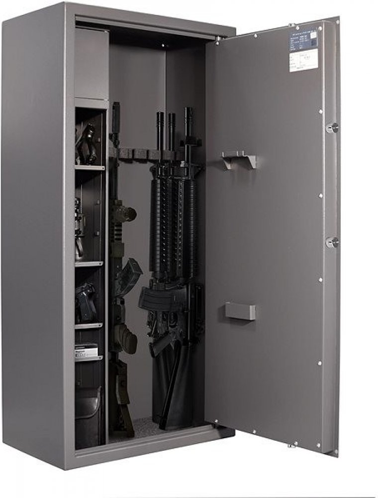 Pokud vlastníte větší obnos peněz či cennosti, tak by zajisté neměla scházet doma či firmě kvalitní ochrana těchto cenností. Velmi přísné podmínky platí pro držení zbraně a její skladování. Se splněním všech legislativních požadavků vám pomůže zbraňový trezor, umožňuje umístění zbraně a střeliva do odlišných sekcí. Jeho velikost se hodí na dlouhé zbraně. Aby byla zajištěna co největší bezpečnost, je třeba trezor připevnit tento typ má připravené otvory pro ukotvení do stěny. K důležitým parametrům se řadí i bezpečnostní třída. Na předmětech, které budete uvnitř uschovávat, záleží její hodnota. Jednoduše platí, že vyšší bezpečnost znamená vyšší číslo třídy, právě u tohoto trezoru je bezpečnostní třída S1. K otevírání dochází díky elektronickému zámku, na kterém zadáte kód. Nezanedbatelnou věcí pro vás, ale i pro pojišťovnu, je obdržení certifikace pro zámek i plášť. Účinná a kvalitní ochrana je základem pro život bez strachu o vaše cennosti. Stěžejní vlastnosti trezoru VAMA Arzenal 1253 EL 15RU šedá...