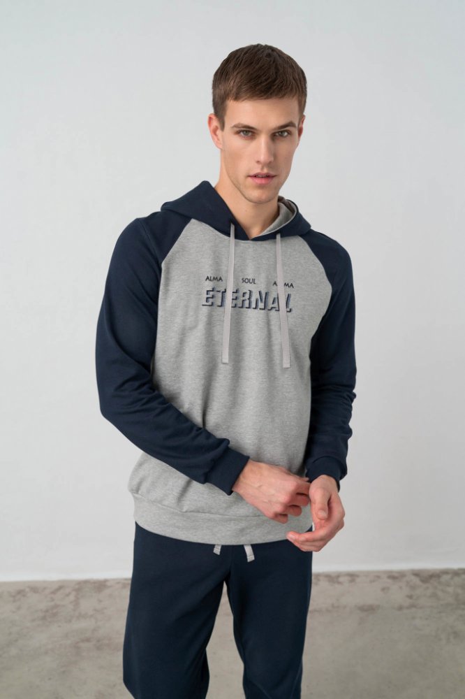 Komplet sestává z mikiny s dlouhým rukávem a kapucí, který doplňují dlouhé teplákové kalhoty s kapsami, stahovací šňůrou v pase a manžetami v dolním zakončení.