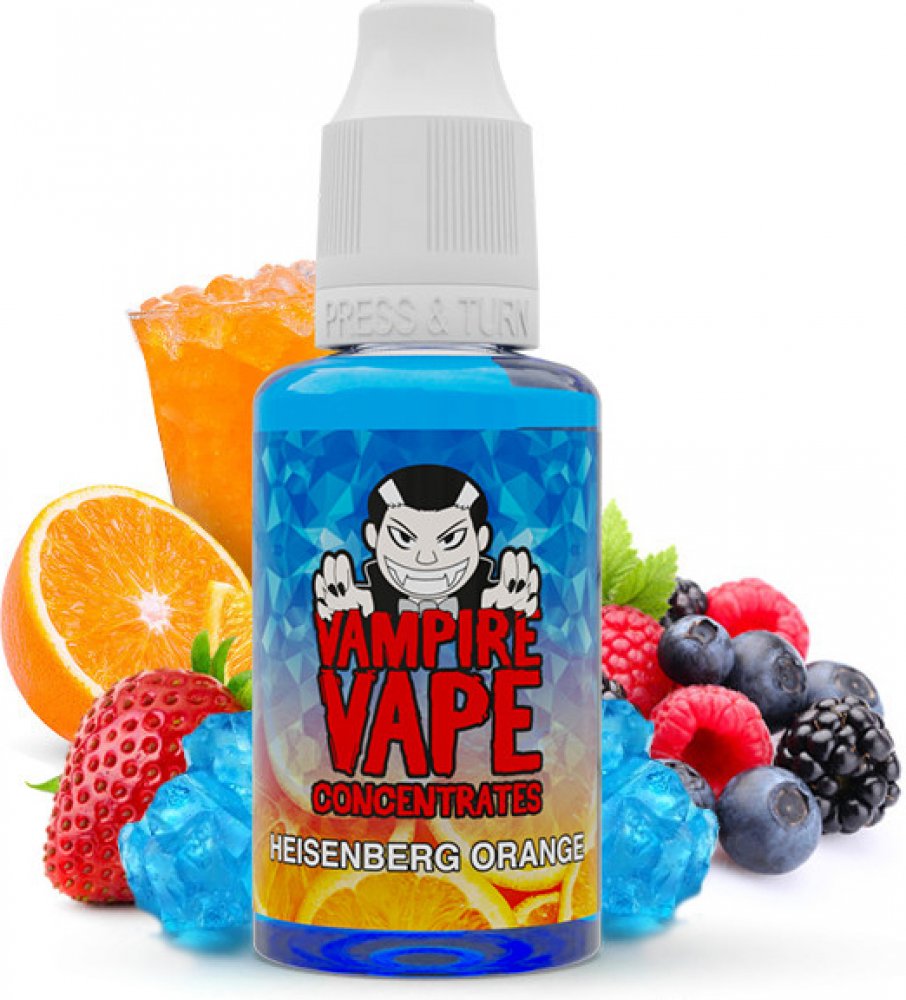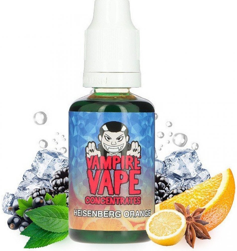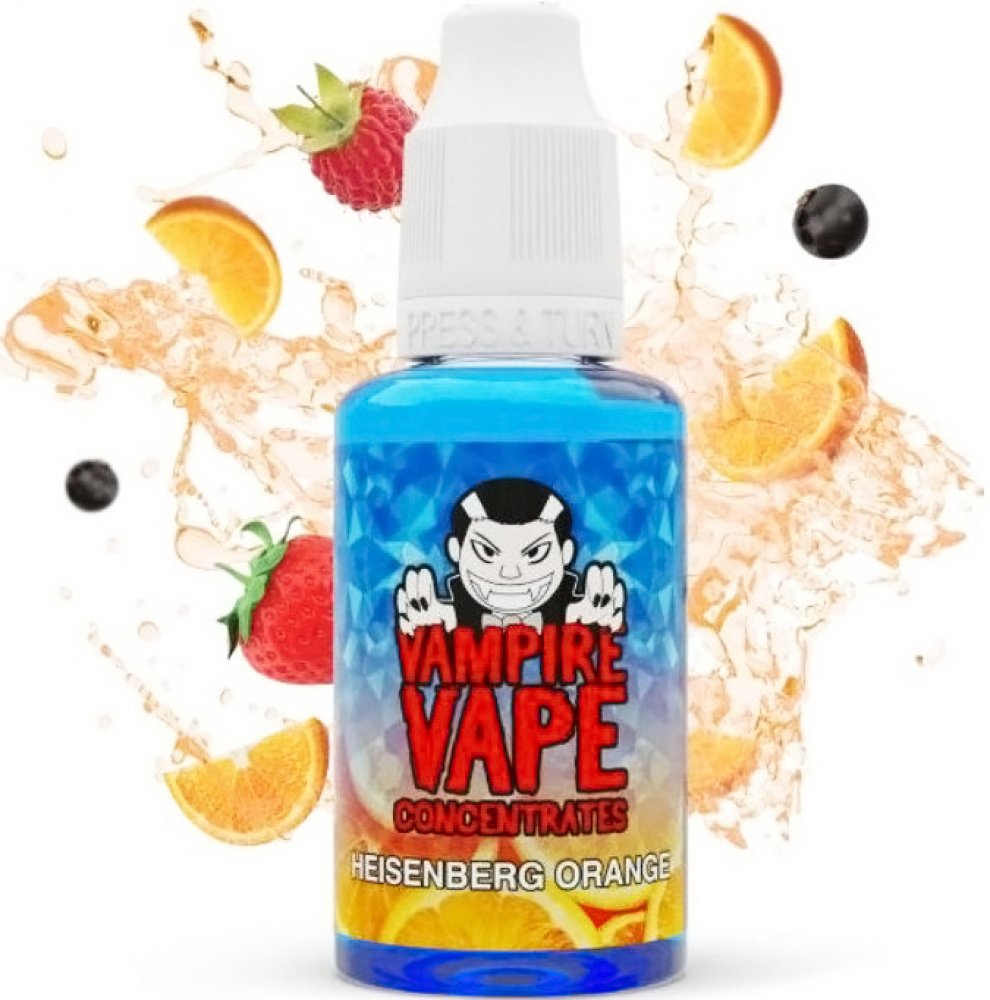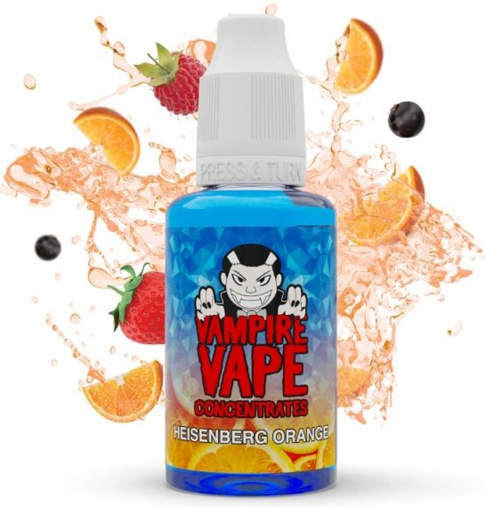 Heisenberg Orange je nejnovějším přírůstkem v řadě příchutí stejnojmenné série. Přichází s velmi oblíbenou příchutí v podobě čerstvě vymačkané čerstvé ovocné šťávy. Tato příchuť bezpochyby aspiruje na krále celodenních vapů. Jistě potěší všechny, kdo mají rádi osvěžující směsi, které jsou ideální pro vapování kdykoli během dne. Samostatná příchuť, určená k míchání vlasních e-liquidů. Nejedná se o hotový e-liquid, ale o základní aromatickou složku, která se ředí se základní bází určenou pro míchání liquidů, případně hotovým nikotinovým boosterem. Doporučený poměr ředění s patřičnou bází udávaný výrobcem je 10-15%. Objem lahvičky s příchutí 30ml. Výrobce Vampire Vape. Vyrobeno ve Velké Británii.
