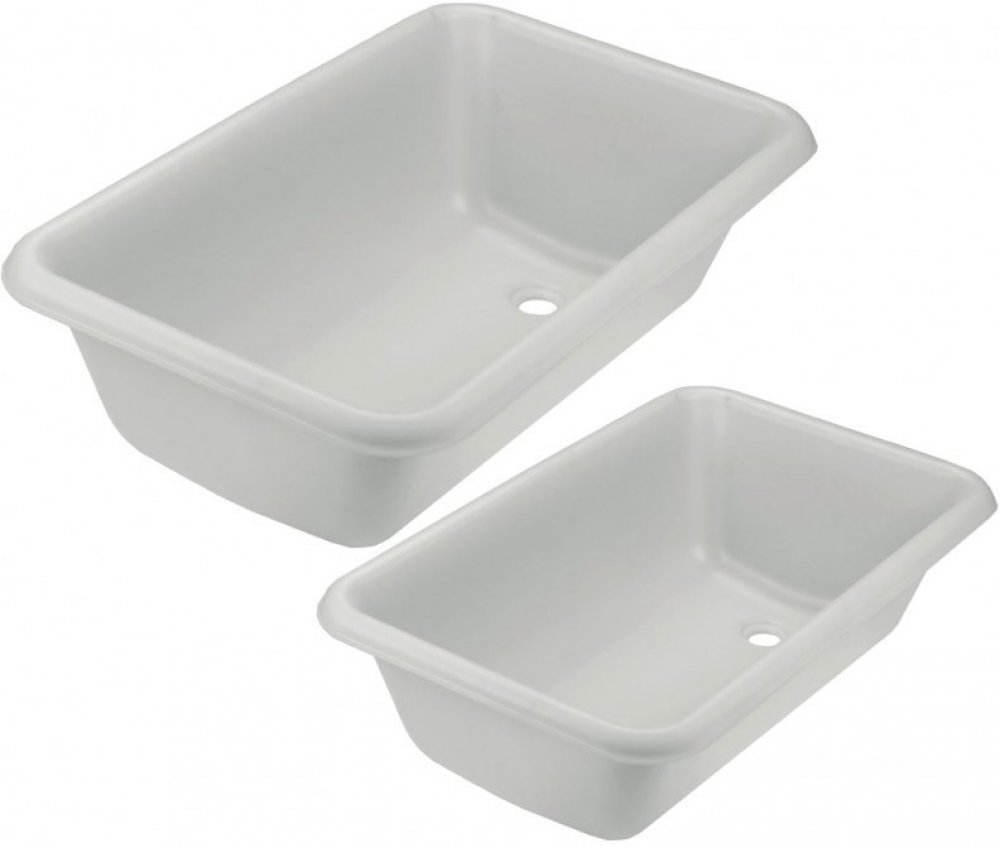 Mycí vana z čistého velmi kvalitního polyetylenu. Materiál je extrémně odolný vůči kyselinám a teplotám (-30°C až +110°C). Odolná vůči nárazům a zlomení. Zdravotně nezávadný materiál, hladký - dobře čistitelný. Výpusť opatřena filtrem a odpadní spojkou. Díky mírně nakloněnému dnu dobře odtéká. Lze doplnit držákem na zeď či stojanem na zem, který je vyroben z pozinkované oceli.
