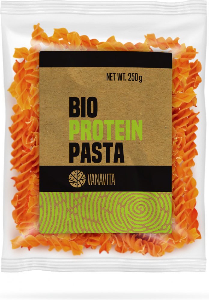 BIO Proteinové těstoviny patří mezi bezlepkové veganské přílohy v BIO kvalitě. BIO Proteinové těstoviny patří mezi bezlepkové veganské přílohy v BIO kvalitě. Jsou tvořeny moukou z červené čočky a hrachovým proteinem, díky čemuž slouží jako skvělý zdroj kvalitních bílkovin, sacharidů a také vlákniny. Těstoviny mají nízký obsah tuku i cukru a skvěle se hodí jako příloha k masu i omáčkám. BIO Proteinové těstoviny jsou skvělou bezlepkovou alternativou ke klasickým těstovinám. Neobsahují vejce ani jiné živočišné složky, takže si na nich mohou bez obav pochutnat i vegani. Ve složení najdete jen BIO mouku z červené čočky a BIO hrachový protein. Tyto dvě složky společně vytváří chuťově vydařenou kombinaci s vysokým podílem bílkovin. Díky tomu těstoviny přispívají k růstu a udržení svalové hmoty. Mimo to jsou skvělým zdrojem vlákniny a komplexních sacharidů. Proteinové těstoviny mají nízký obsah tuku a cukru, což z nich dělá zdravé jídlo, které si můžete dopřát i při hubnutí. Pro těstoviny najdete mnoho způsobů využití. Skvěle se hodí jako příloha nebo mohou tvořit základ různých salátů. Díky tomu, že už sami o sobě mají vysoký podíl bílkovin, není potřeba je doplňovat masem ani jeho náhražkou. Vytvořte s pomocí těstovin zdravé a vyvážené jídlo s komplexním složením makroživin. BIO Proteinové těstoviny a jejich výhody jsou tvořeny pouze BIO moukou z červené čočky a BIO hrachovým proteinem mají vysoký obsah bílkovin a vlákniny jsou skvělým zdrojem komplexních sacharidů mají nízký obsah tuku a cukru jsou veganské a bezlepkové hodí se jako zdravá příloha nebo základ salátů Složení BIO mouka z červené čočky 88 %, BIO hrachový protein 12 %. Dávkování 100 g těstovin vložíme do 1 l osolené vařící vody a vaříme 6-8 minut. Těstoviny scedíme a propláchneme studenou vodou.