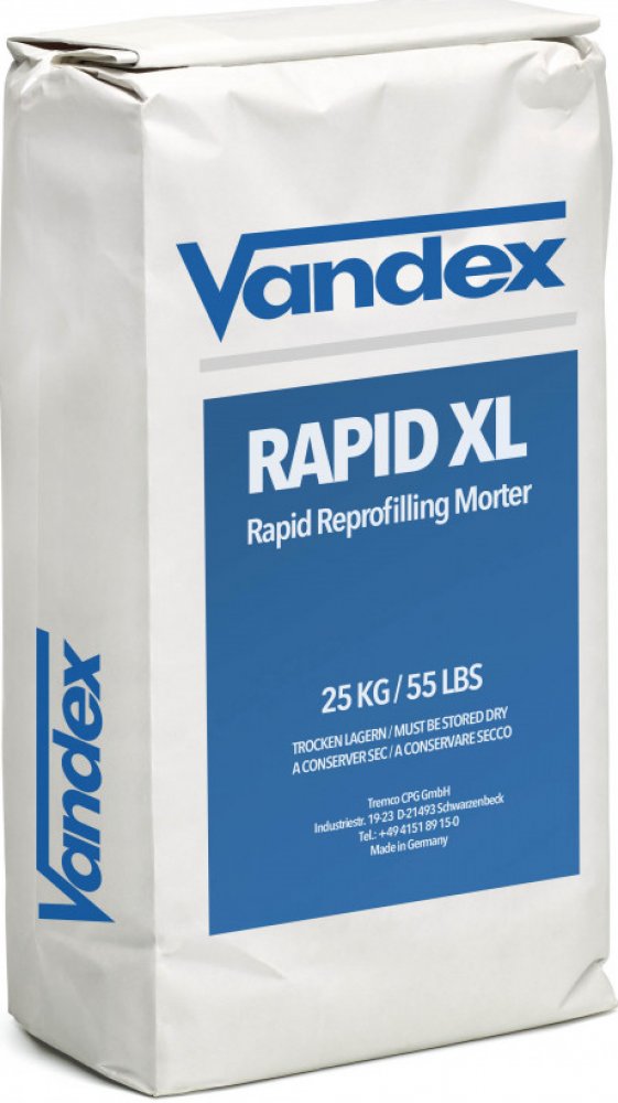VANDEX RAPID XL se vyznačuje velmi nízkým smrštěním. Vlákny zesílená modifikace dává vytvrzené maltě zvýšenou odolnost proti dynamickému namáhání a pevnosti ve střihu. Maltu lze nanášet ve velmi velkých vrstvách. Výborná přilnavost k podkladu nevyžaduje žádná zvláštní přípravná opatření jako je např. kontaktní můstek. Teplota při zpracování by neměla být nižší jak +5°C.