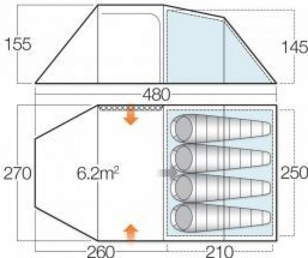 7.9 kg 480 cm 3000 mm 265 cm 155 cm 4 2 Vango rodinné s jednou ložnicí tunelové 0