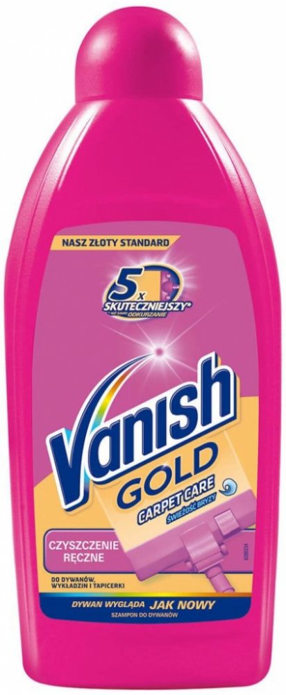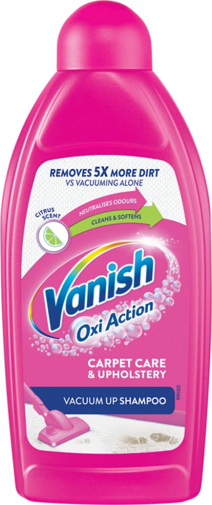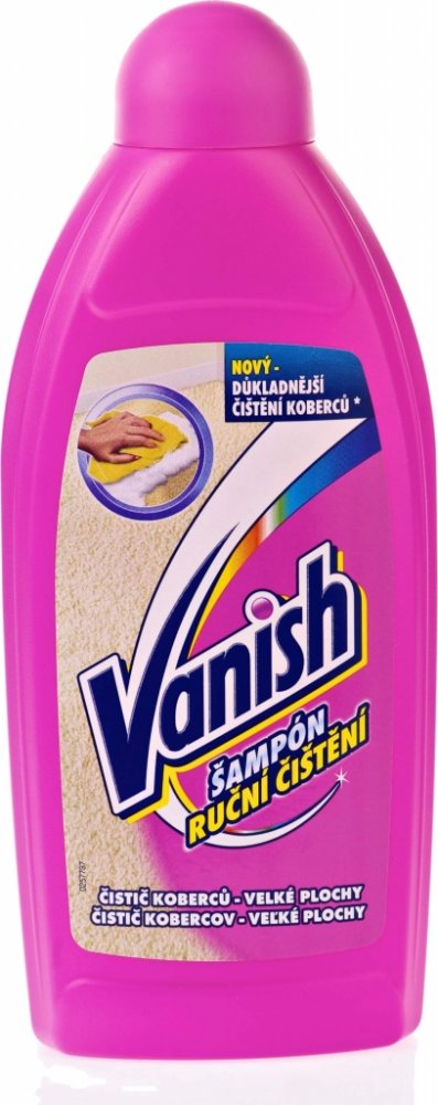 Vanish šampon na ruční čištění koberců - Čistota a svěžest. Vhodný na velké plochy a je 5x silnější v odstraňování nečistot oproti samotnému vysávání. Lepší v odstranění do hloubky zanesené špíny i prachu a v neutralizaci zápachu díky složkám Acti-Fresh, které zanechají velké kobercové plochy skutečně čisté a svěží po delší dobu.