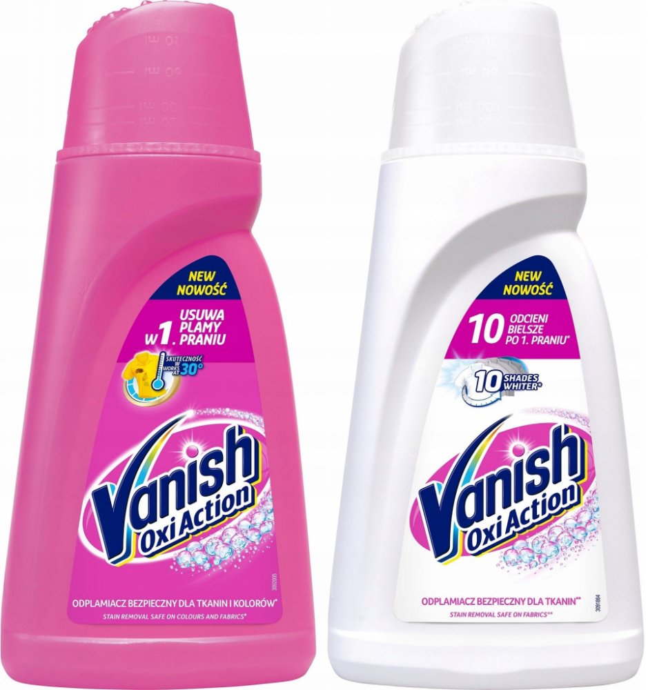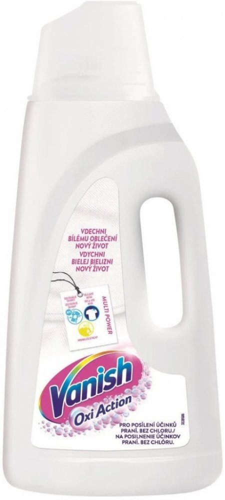 Vanish na skvrny Oxi Action White je tekutý odstraňovač skvrn na bílé prádlo. Pro bílé prádlo je nejoblíbenější odstraňovač skvrn na trhu. Šetrný k oblečení, ale přísný na skvrny. Po 1. vyprání až o 10 odstínů bělejší prádlo. Pro zářivě čisté a krásně bílé prádlo beze skvrn každý den. Zářivě bílé prádlo i po 50. vyprání. Vanish představuje účinný způsob udržování bělosti bílých látek bez poskvrny a zároveň odstraní skvrny již po prvním praní.