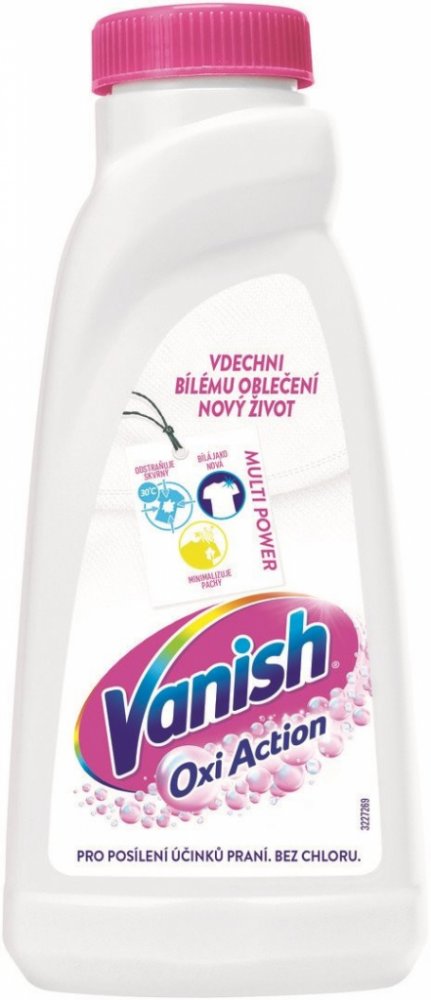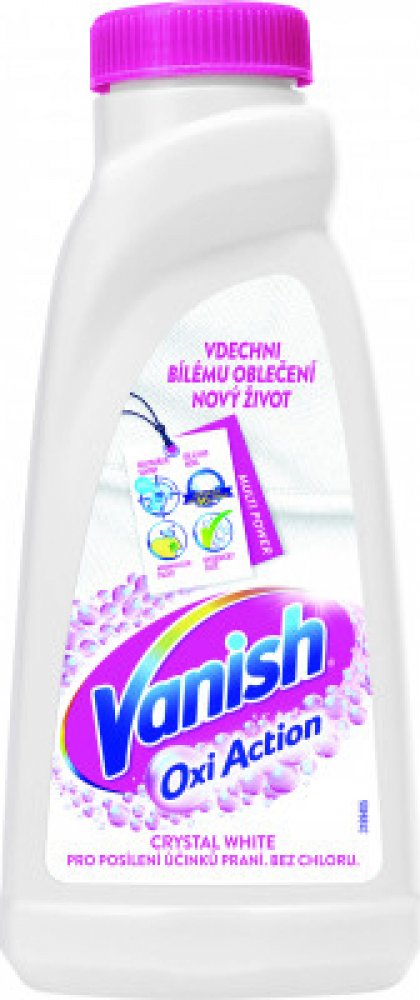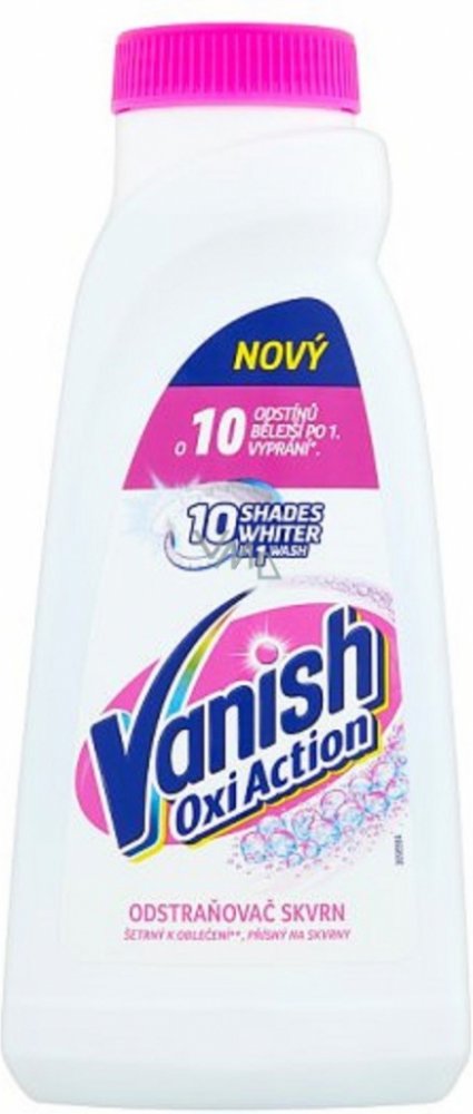 Vanish Oxi Action tekutý odstraňovač skvrn na bílé prádlo představuje účinný způsob udržování bělosti bílých látek bez poskvrny a zároveň odstraní skvrny již po prvním praní.