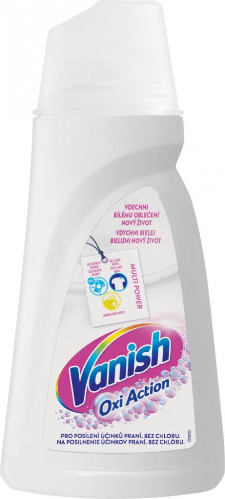 Vanish Oxi Action tekutý odstraňovač skvrn na bílé prádlo představuje účinný způsob udržování bělosti bílých látek bez poskvrny a zároveň odstraní skvrny již po prvním praní.