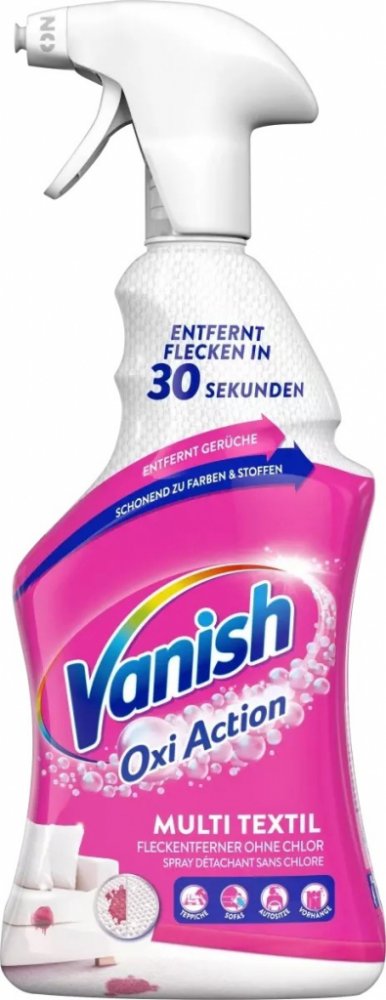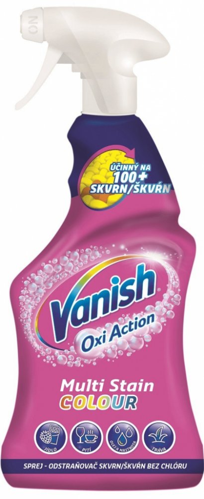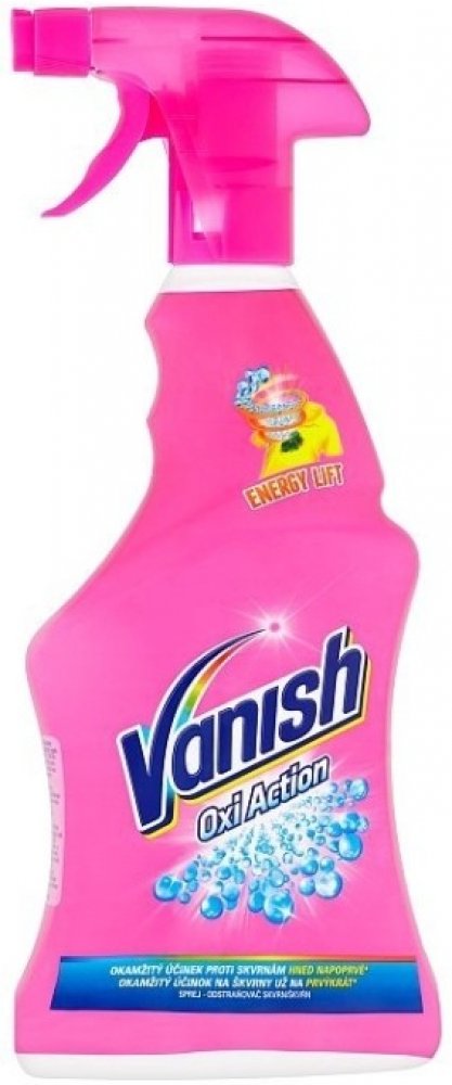 Vanish Oxi Action sprej odstraňovač skvrn. Okamžitý účinek proti skvrnám hned napoprvé. Jeho účinné složení proniká hluboko do vláken a rozpouští dokonce i ty nejodolnější skvrny, jako je špína a mastnota na límcích a manžetách. Je vhodný na barevné i bílé oblečení a prádlo.