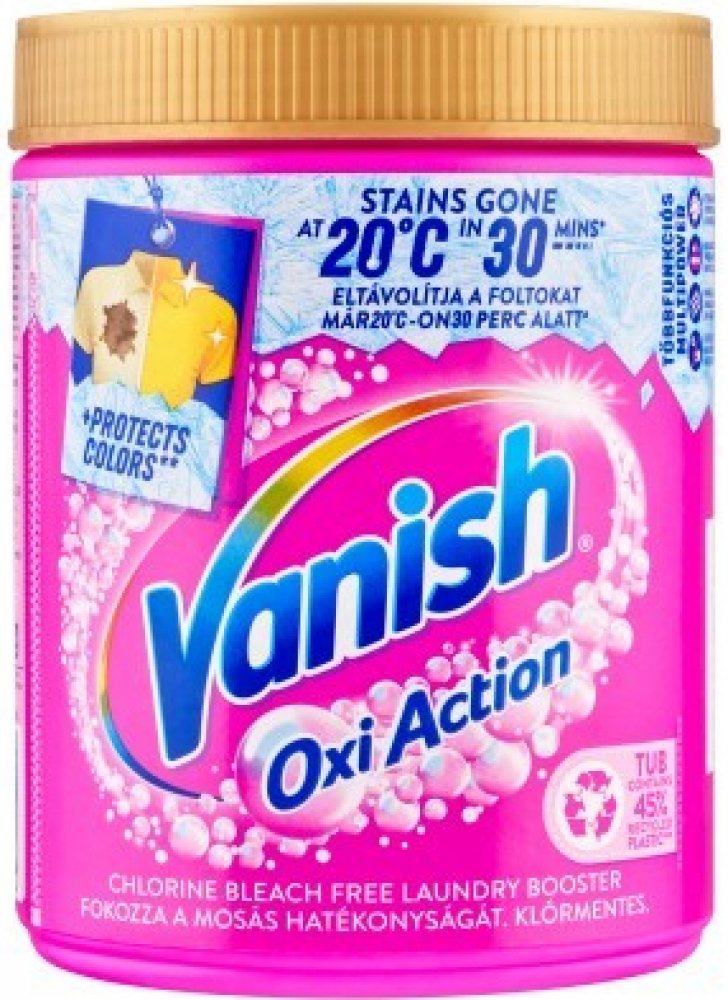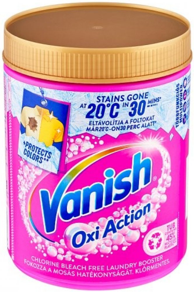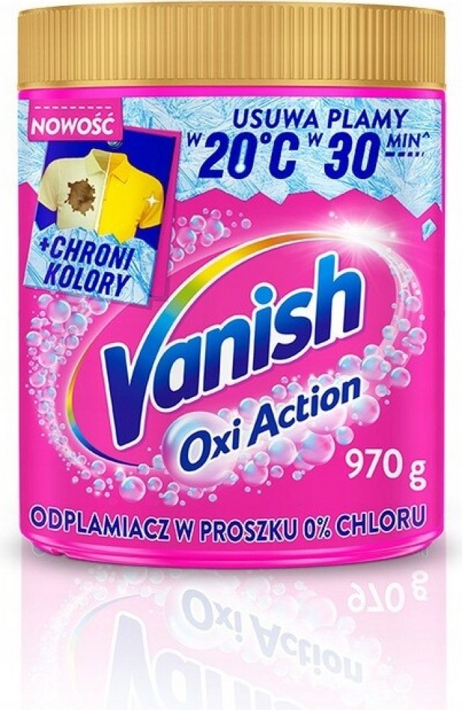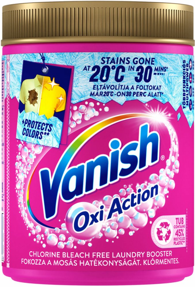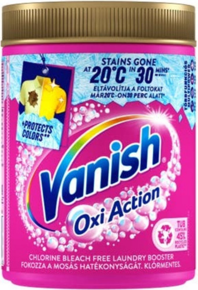 Vanish Oxi Action prací prášek – účinné odstranění skvrn už od 20 °C Vanish Oxi Action je špičkový prášek na praní, který odstraňuje i ty nejodolnější skvrny – a to už při nízkých teplotách od 20 °C. Bezpečný pro tkaniny, šetrný k barvám i vláknům. Pomáhá udržet vaše oblečení čisté a svěží po každém praní. ✨ Proč si Vanish zamilujete? Odstraní i odolné skvrny – víno, tráva, krev, káva Účinkuje už při 20 °C a za 30 minut Bez chlóru – šetrný k textilu Chrání barvy nebo obnovuje bělost (dle varianty) Ideální doplněk k pracímu prostředku ? Dostupné varianty (970 g): Oxi Action (růžový) – pro barevné prádlo, chrání barvy Oxi Action Crystal White (bílý) – pro bílé prádlo, obnovuje zářivou bělost ? Balení obsahuje 970 g prášku. Obal obsahuje 45 % recyklovaného plastu.