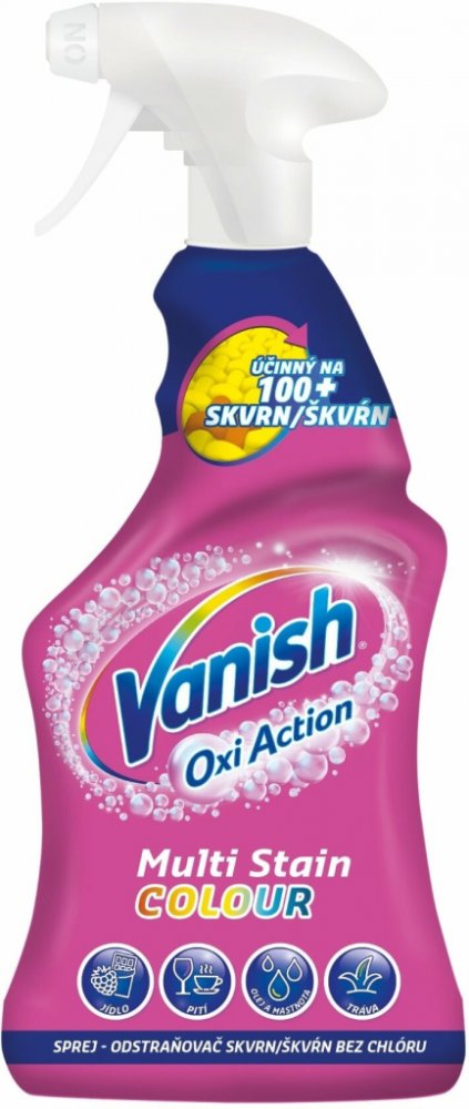 Vanish Oxi Action Multi-Stain Prewash Spray s aktivním kyslíkem účinně odstraňuje skvrny z bílého prádla. Dokonce i odolné skvrny od make-upu a jídla.