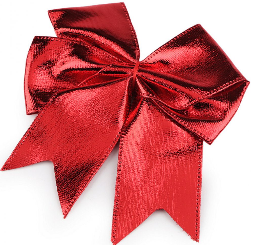 Vánoční červená mašle metalická 10,5x12 cm - červená