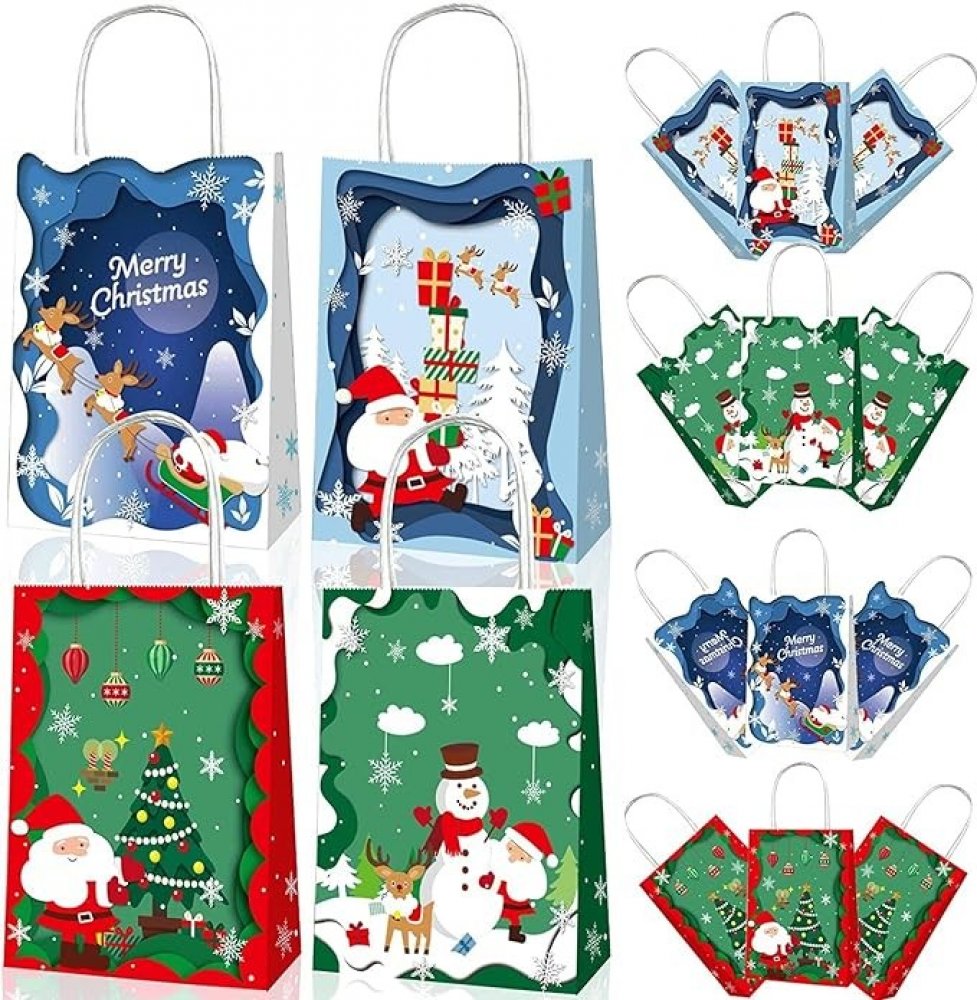 [Rozměry] Velikost sáčku: 21 x 16 x 8 cm, délka rukojeti: 11 cm, vhodná pro ukládání dárků, hraček, občerstvení, cukrovinek atd., 3ks sáčků každého stylu, je to nejlepší volba pro balení vánočních dárků
