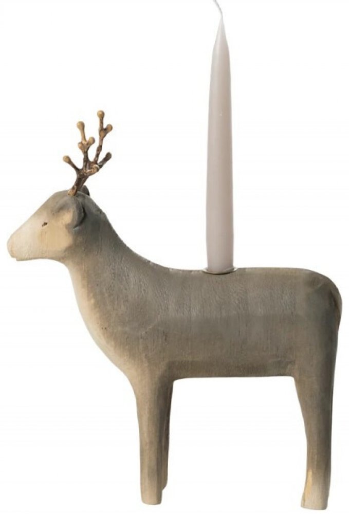 Vneste do svého domova teplo a klid svátečních večerů s vánočním dřevěným svícnem Reindeer Medium od značky Maileg. Jeho přirozená krása a precizní zpracování v sobě spojují rustikální kouzlo zimní přírody s jemností vánočního světla. Tento svícen z kvalitního dřeva nabízí úchyt pro menší svíčku, která rozzáří každý kout vašeho domova. Přidejte do své vánoční výzdoby tento elegantní doplněk a vytvořte si prostor plný pohody, kde každý plamínek vypráví příběh klidu a radosti.