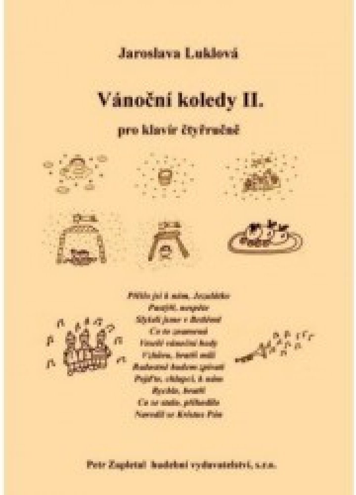 Vánoční koledy pro čtyřruční klavír II. LUKLOVÁ, 2. díl s již méně známějšími koledami, sbírka končí koledou "Narodil se Kristus Pán", tentokrát v poněkud ztížené verzi. Partitura + vložené oba klavírní party (primo, secondo).