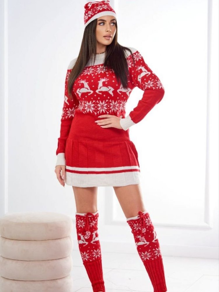 BARVA: červená MATERIÁL: 50% bavlna, 50% akryl VELIKOST: UNI Červený svetr je klasika ve vánočním duchu. Zdobí ho vánoční vzory. Svetr je vyroben z měkkého a hřejivého materiálu, díky čemuž se pohodlně nosí i v chladnějších dnech. Čepice, která se svetrem dokonale ladí, nejenže udrží vaši hlavu v teple, ale také doplní celý styling. Ponožky nad kolena jsou okouzlujícím doplňkem, který může být praktický i dekorativní. V červené vánoční soupravě se svým svátečním stylem jistě zatočíte. Je to nejen pohodlné a praktické řešení pro chladnější dny, ale také skvělý způsob, jak vyjádřit radost z nadcházejících svátků. Červená barva dokonale odráží atmosféru tepla a kouzla Vánoc. Velikost je univerzální a padne ženám ve velikostech S, M, L.