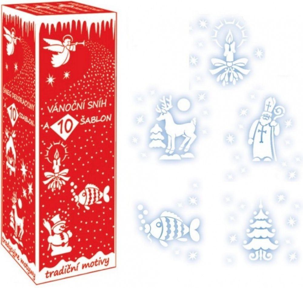 Vánoční dekorační sníh ve spreji vám pomůže vytvořit kouzelnou vánoční atmosféru. K dekoraci oken, výkladních skříní, zrcadel a podobně. Sníh také zimně ozdobí větvičky, šišky ve vaší adventní dekoraci.v balení také 10 šablon s tradičními vánočními motivyobjem spreje: 150 ml