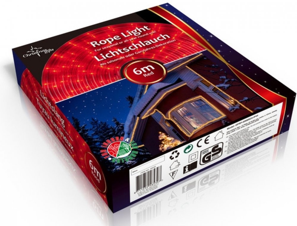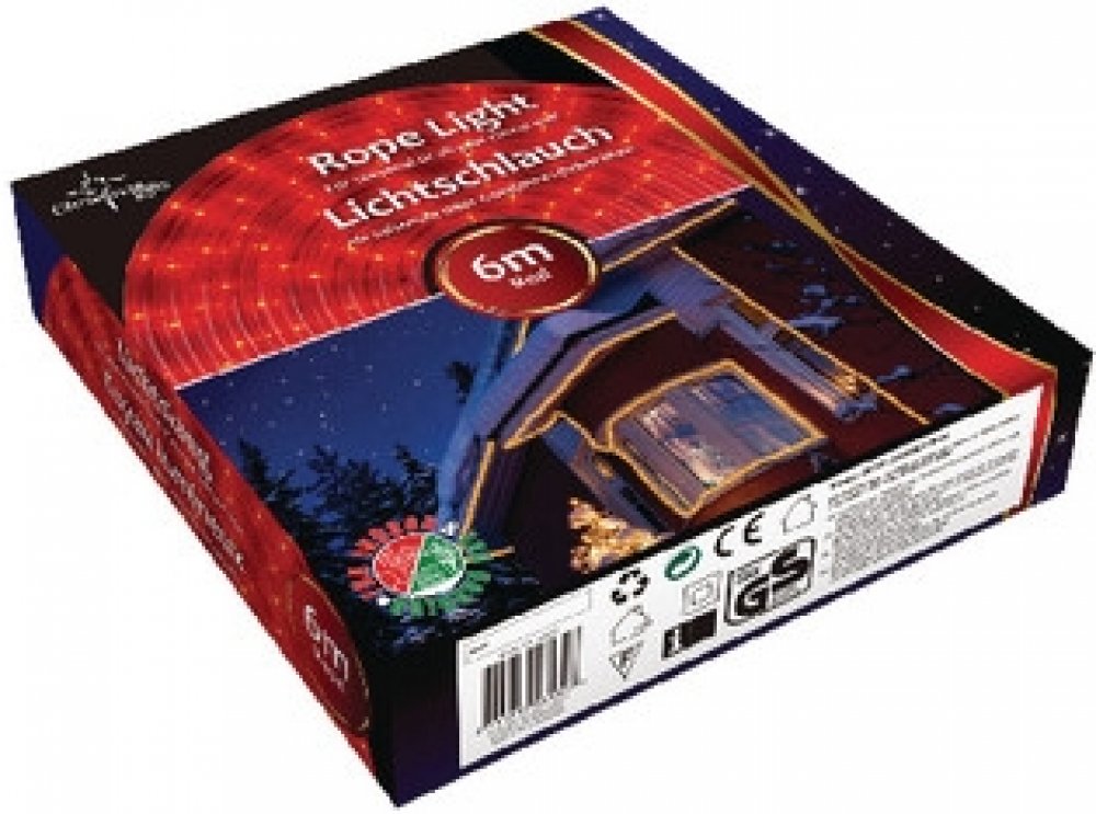Vánoční venkovní světelný řetěz LED červený, 230V, délka 6 m