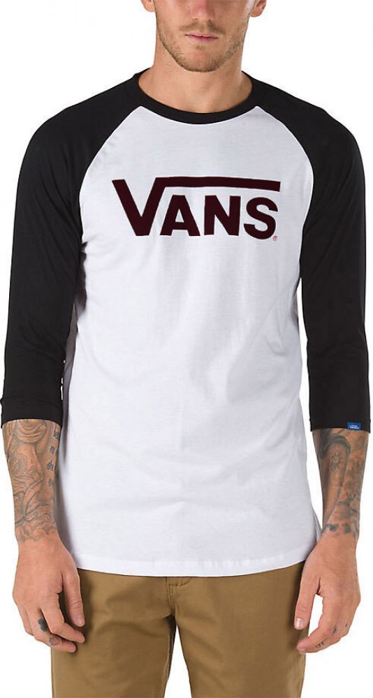 Jednoduše střižené pánské triko Vans CLASSIC RAGLAN s tříčtvrtečním raglánovým rukávem v kontrastní barvě a velkým logem značky na hrudi. Prostě perfektní stylový kousek k tvým oblíbeným keckám na každodenní nošení i výjimečné příležitosti!