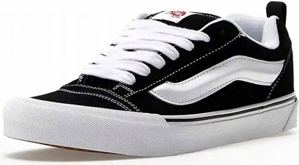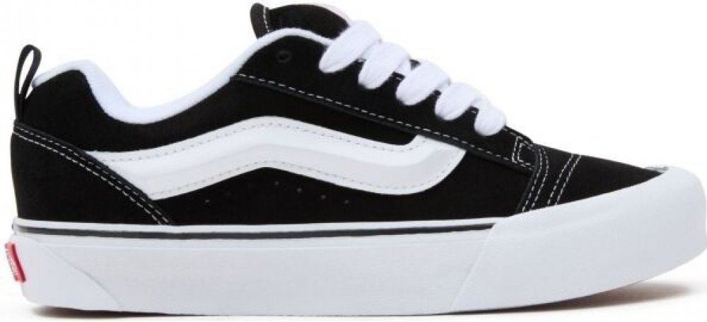 Vans Knu Skool je obnovený model z 90. let. - tehdy měly skejtové boty extra silné svršky. Tyto boty s nízkým svrškem z odolného semiše mají velký polstrovaný jazyk a límec kolem kotníku, které jim dodávají objemný vzhled odkazující na původní model Old Skool.