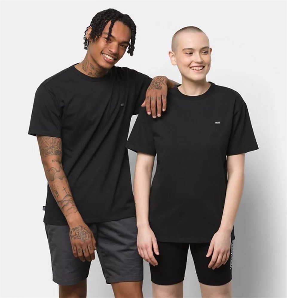 Vans 100 % bavlna s krátkým rukávem černá s kulatým výstřihem regular fit