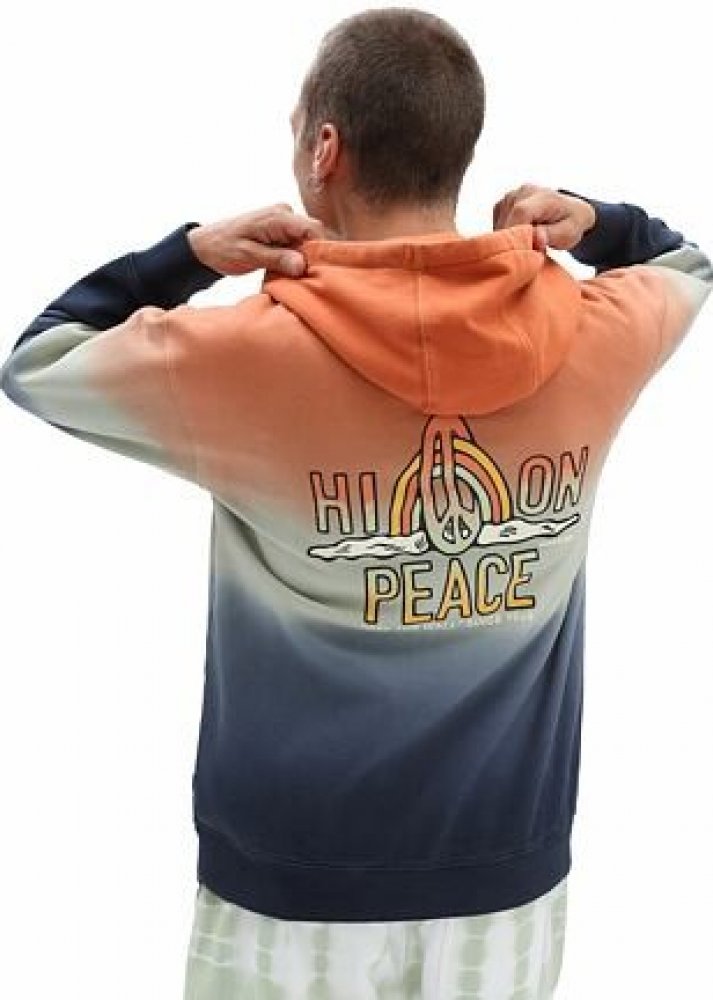 Mikina Peace of Mind II s kapucí je stylovou kombinací oranžové, béžové a tmavě modré barvy. Potěší vás přední klokaní kapsou a zaujme velkým potiskem na zádech. Jeho menší varianta je na prsou. Nová kolekce Vans. jednoduchý batikový efekt stylová grafika na zádech a na prsou kapuce se šňůrkou na stažení elastický spodní lem elastické menžety klokaní kapsa volný střih kvalitní provedení ze směsi b...