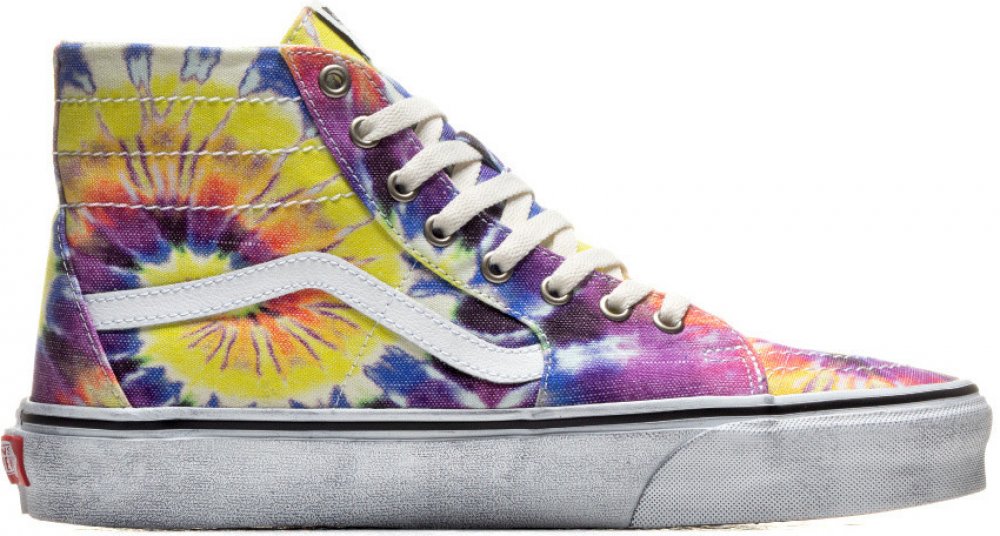 Unisex boty Vans SK8-Hi Tapered washed tie dye/true white, materiál textílie a kůže. Pánské, dámské boty s prvky Vans. Potisk je u každých bot jinak rozložen.
