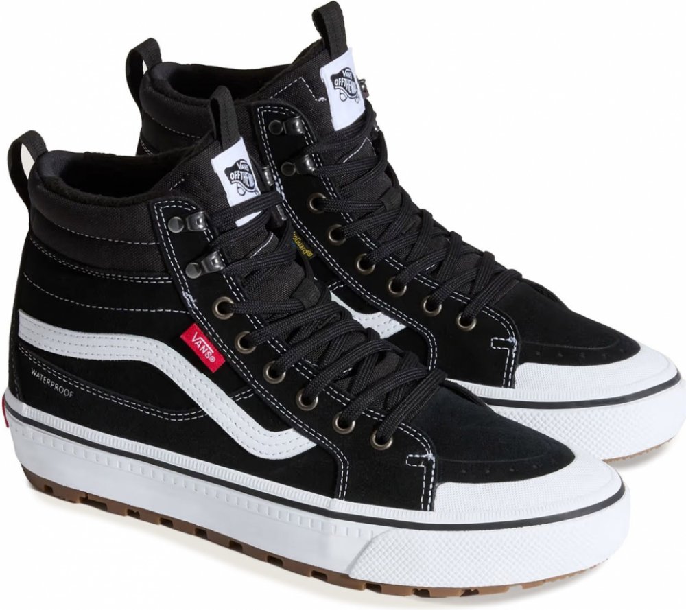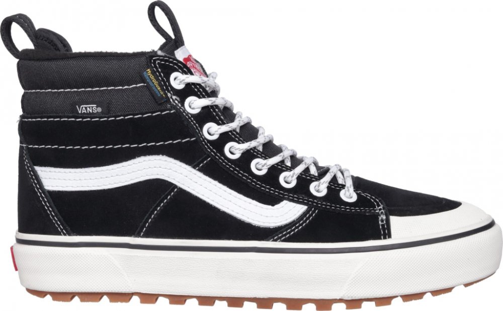Jsou vyrobeny pro všechny podmínky, které denně zažíváme. Nové modely Sk8-Hi Waterproof MTE představují více než 25 let historie obuvi Vans a řešení pro snowboarding zachycených v nadčasovém, oblíbeném stylu. Podrážka s All-Trac™, gumovou směsí do každého počasí jedinečnou pro MTE, která nabízí výrazně lepší přilnavost. Voděodolná membrána HydroGuard™ 360 vás udrží v suchu, vysoce výkonná zónová izolační technologie PrimaLoft® zajistí termoregulaci při nízkých teplotách a tvarovaná stélka s jednou hustotou a vrchní vrstva OrthoLite® zajistí pohodlí. Odolný vodoodpudivý svršek navíc kombinuje ikonickou estetiku značky Vans s nekompromisním komfortem v chladném počasí. Ať už budete zdolávat zasněžené vrcholky, nebo čelit lijáku cestou do práce, můžete vyrazit s jistotou, že každý steh splňuje svůj úkol a poskytuje bezkonkurenční všestrannost. Dobře víme, že vám nikdy nešlo o to, abyste dosáhli svého cíle. Jde o příběhy, které na své cestě vytvoříte. • • Přilnavost - nová pryžová podrážka All-Trac™ poskytuje pružnost a vynikající přilnavost za všech povětrnostních podmínek a podporuje přilnavost k různým povrchům. • Termoregulace - zónová izolace Primaloft® Insulation využívá prvotřídní tepelně izolační systém z mikrovláken, který napodobuje vlastnosti přírodního prachového peří a poskytuje teplo, aniž by nasákl vodou. • Kontrola vlhkosti - nová povrchová úprava HydroGuard poskytuje 360stupňovou ochranu před stříkající vodou a kalužemi v okolí boty a vytváří spolehlivý, pohodlný a prodyšný systém nepromokavosti. • Pohodlí a výkon - tvarovaná stélka z pěny EVA UltraCush™ o jedné hustotě a vrstva OrthoLite® poskytují výjimečné pohodlí a lehkost a také zdravější a sušší prostředí uvnitř boty.
