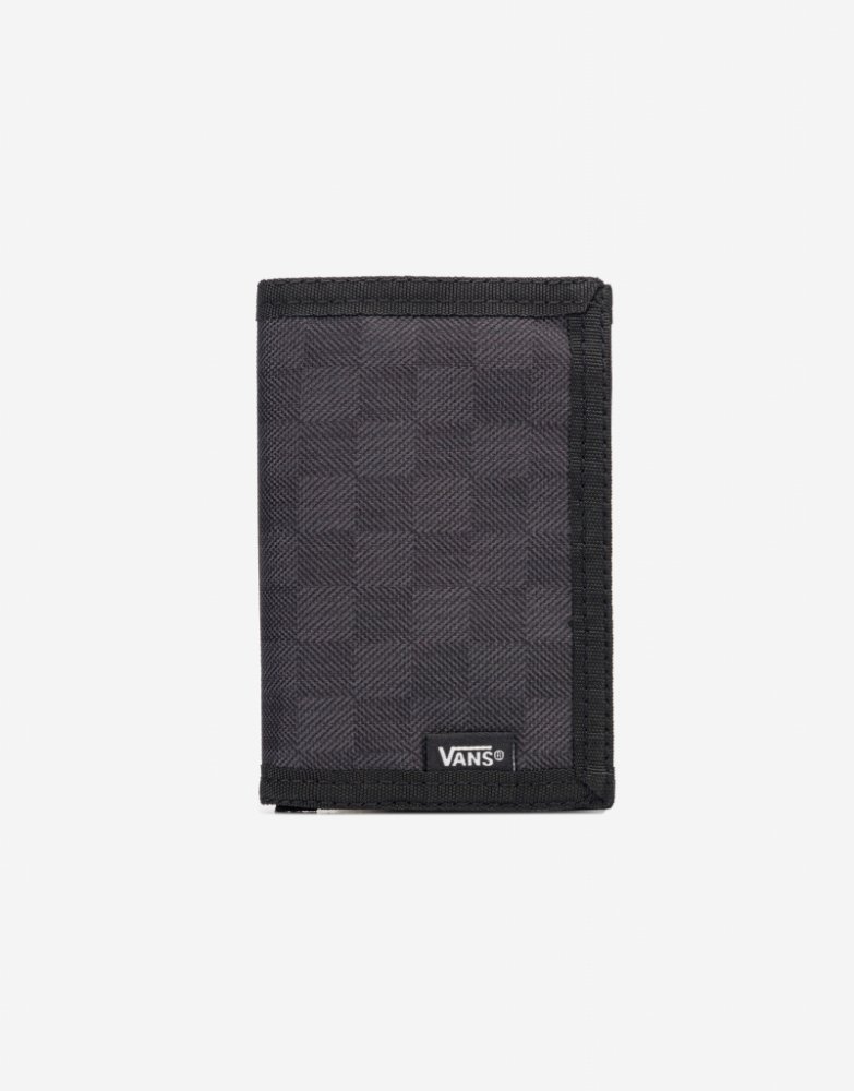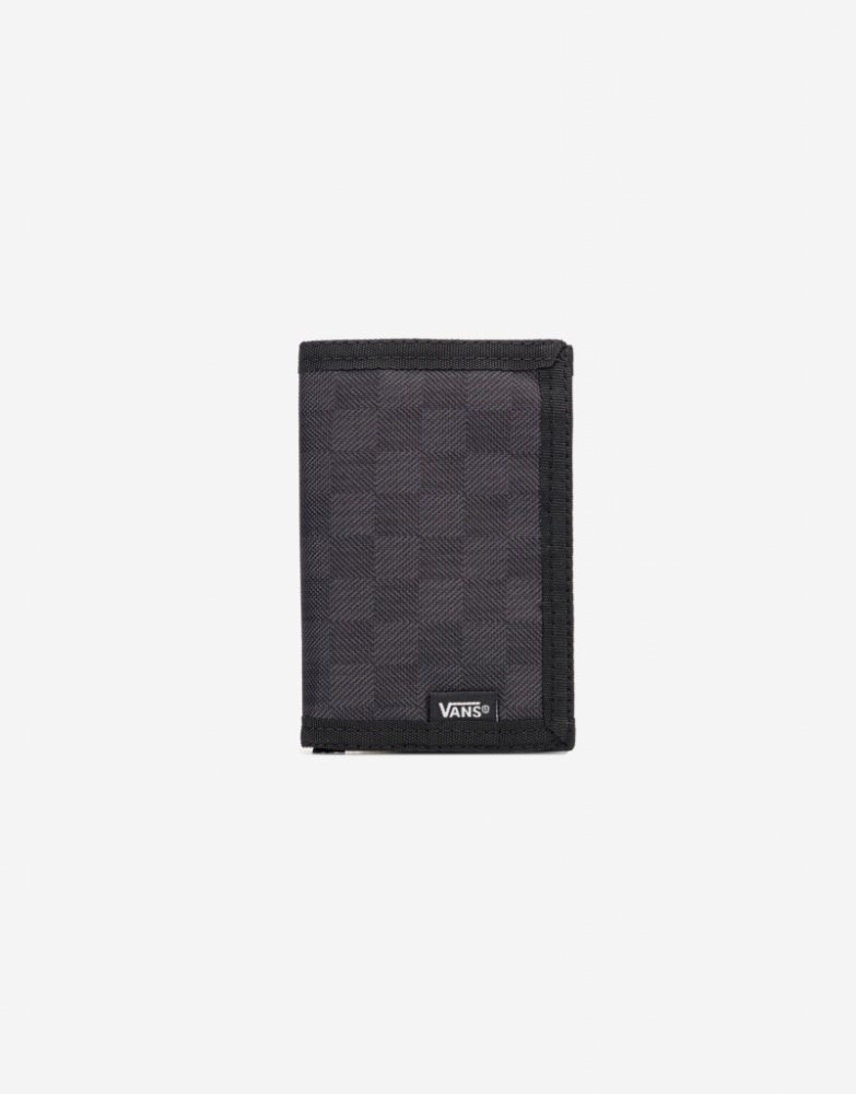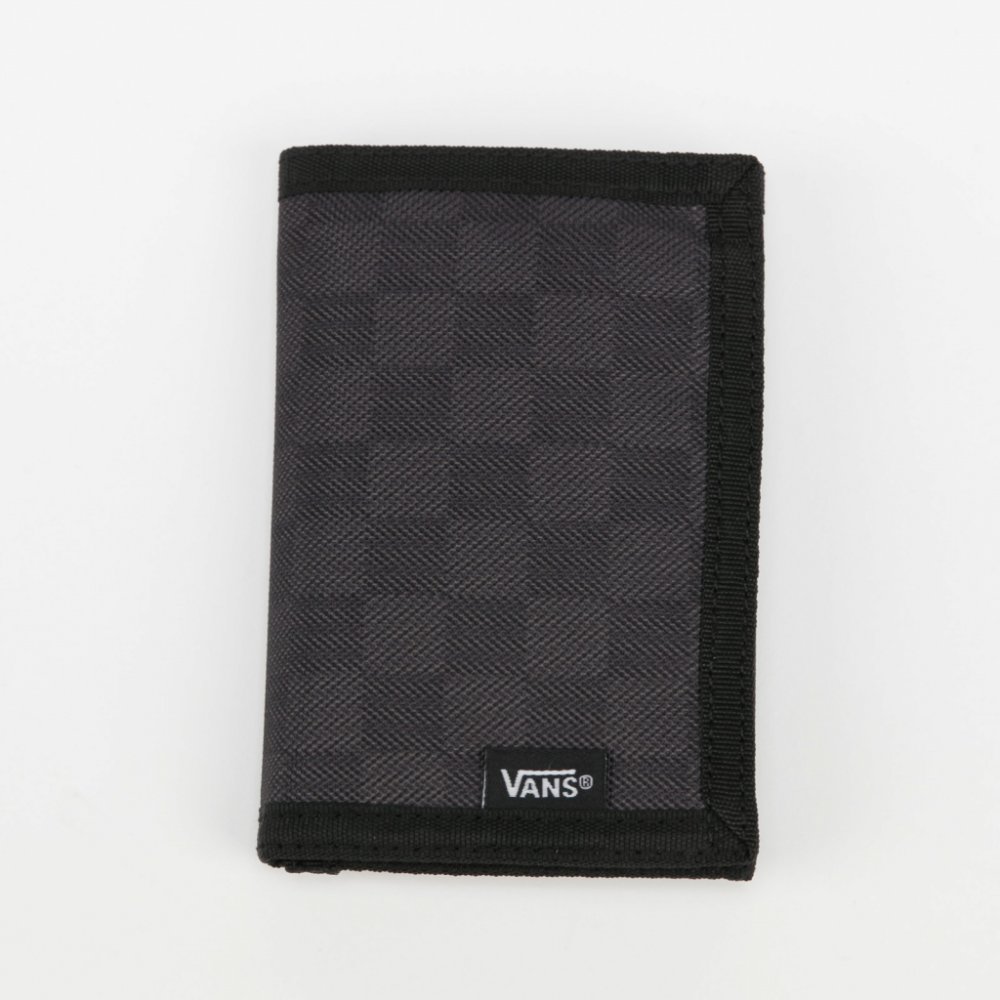 Černošedá rozevírací peněženka od značky Vans. přihrádka na bankovky přihrádky na karty kapsa na zip na mince logo na přední straně