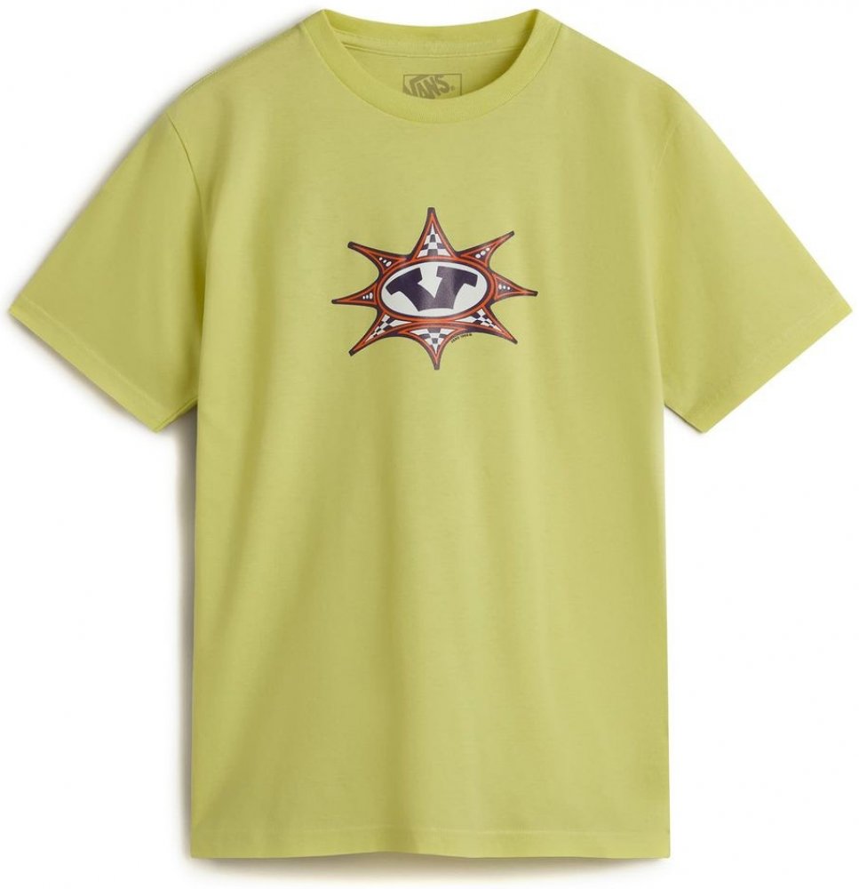 Doplňuje je výrazný grafický motiv V obklopený náznaky šachovnicového vzoru, který je nezaměnitelným znakem značky Vans.
