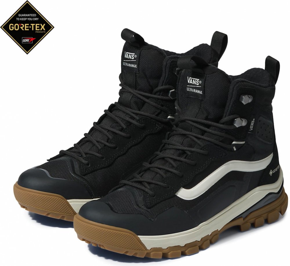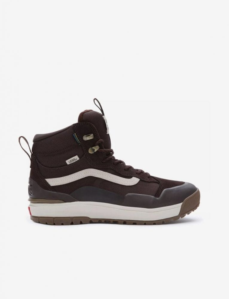 Zimní boty Vans Ultrarange EXO Hi GORE-TEX Vítej v nové éře zimních bot Vans inspirovaných technickou obuví. Stvořeny pro různorodé aktivity a postaveny na poznatcích z evoluce snowboardových bot se cítí jako doma v zasněžených kopcích i na deštěm promáčených cestách po městě. Vybaveny jsou MTE-3 GORE-TEX voděodolnou membránou, zateplením MTE-3 3M Thinsulate a UltraRange EXO MTE-3 podrážkou s All-Trac gumou vhodnou do každého počasí. Přidej k tomu pohodlí díky tvarované špičce a ochraně paty a dostaneš ten nejfunkčnější Vans MTE produkt, jaký kdy vytvořili. Protože život není o tom, kam se vydáš, ale o zážitcích, které získáš během cesty tam! Specifikace - Zcela nová gumová směs podrážky UltraRange EXO MTE-3 All-Trac™ s víceúrovňovou povrchovou úpravou poskytuje flexibilní, spolehlivou přilnavost za každého počasí, která výrazně napomáhá celkové trakci na všech druzích povrchů. - Termoregulace MTE-3 3M Thinsulate je teplá, lehká, výkonná a tenká. Extrémně jemná mikrovlákna v Thinsulatu pomáhají zachytávat vzduch a brání úniku tepla, čímž vytvářejí neuvěřitelně účinné zateplení a zároveň umožňují únik vnitřní vlhkosti. - Konstrukce s klasickou vnitřní botou, která umožňuje odvádění vnitřní vlhkosti a zároveň zabraňuje pronikání sněhu a deště, je zárukou, že ti GORE-TEX „GUARANTEED TO KEEP YOU DRY™“ zaručí důvěru za jakýchkoli podmínek. - Technologie MTE-3 s trojitou hustotou je vybavena stélkou z PU s otevřenými buňkami s jednou hustotou, mezipodešví UltraRange UltraCush EVA s ochranou špičky a paty a tvarovanou asymetrickou klenbou z TPU. - Materiál: semiš, textilie, syntetika, guma