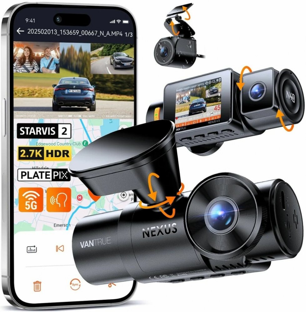 Kamera Vantrue N4S je vybavena Wi-Fi 5 GHz pro rychlé a stabilní připojení k mobilním zařízením s operačním systémem Android i iOS. Pomocí aplikace Vantrue si můžete užít snadné připojení k telefonu, což vám umožní sledovat záznamy v reálném čase, přehrávat videa, a aktualizovat firmware kamery přímo z telefonu. Aplikace také umožňuje snadné vytváření a stahování zpráv o jízdních trasách.