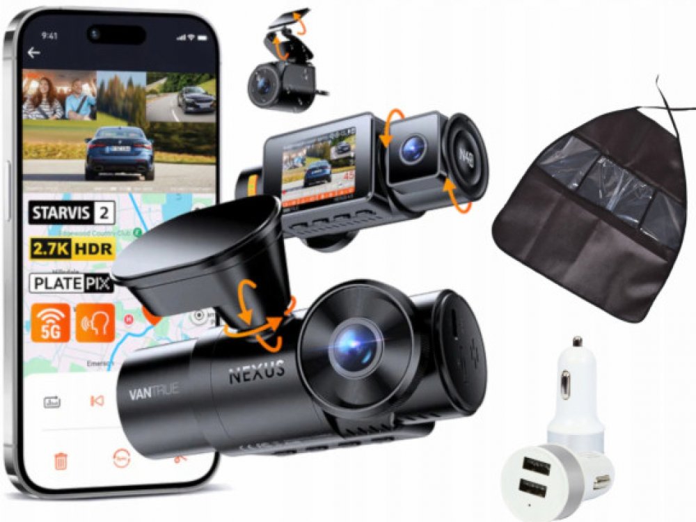 Vantrue N4S je pokročilá tříkanálová palubní kamera, která zajišťuje kompletní záznamy před vozidlem, uvnitř kabiny a za vozem zároveň. Díky širokému úhlu záběru (158° vpředu, 160° vzadu a uvnitř) poskytuje 360° přehled o dění okolo vozidla, což z ní činí skvělou volbu pro taxislužby, Uber, kamionové řidiče i pro rodinné vozy, kteří chtějí mít kompletní ochranu a důkazy z cest. Snímač Sony STARVIS...
