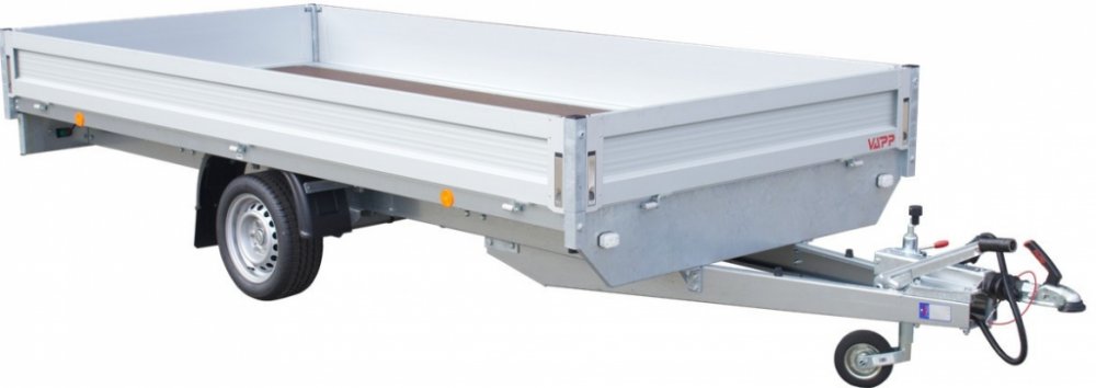 Víceúčelový valníkový přívěs s robustním rámem a vysokou užitnou hodnotou.