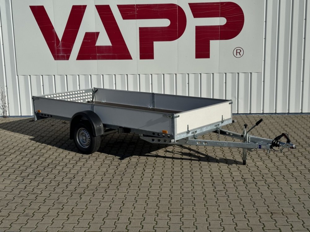 Přívěsy řady VAPP PROFI nabízí všechny přednosti známé z řady UNI, navíc rozšířené o zesílenou brzděnou nápravu s nosností 1300 kg od kvalitních německých výrobců AL-KO nebo KNOTT.