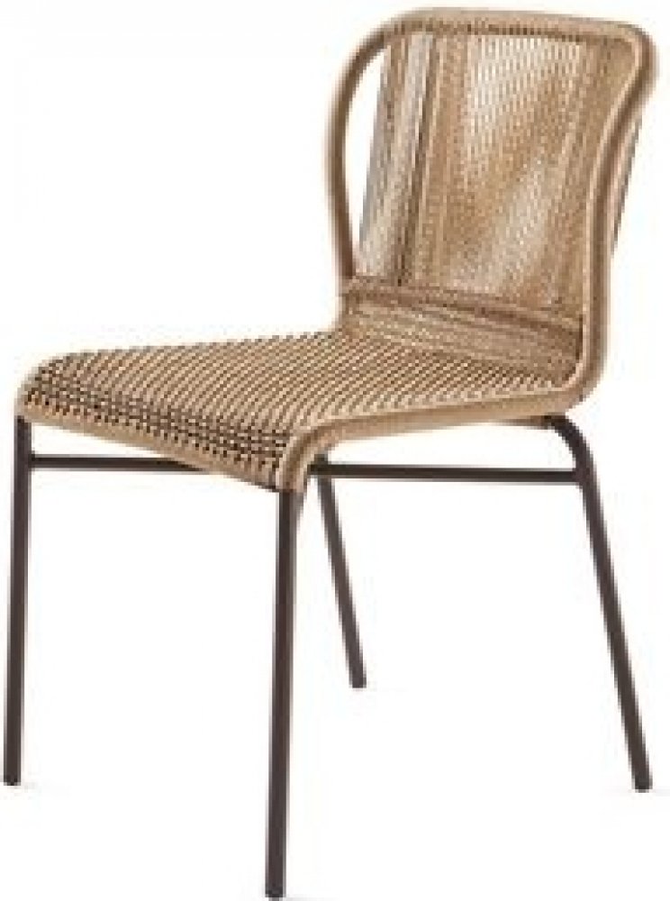 Jídelní židle má rám z lakovaného hliníku opletenou lankovým výpletem. Sedák z venkovní látky s výplní z rychleschnoucí pěny (lze ponechat celoročně venku).