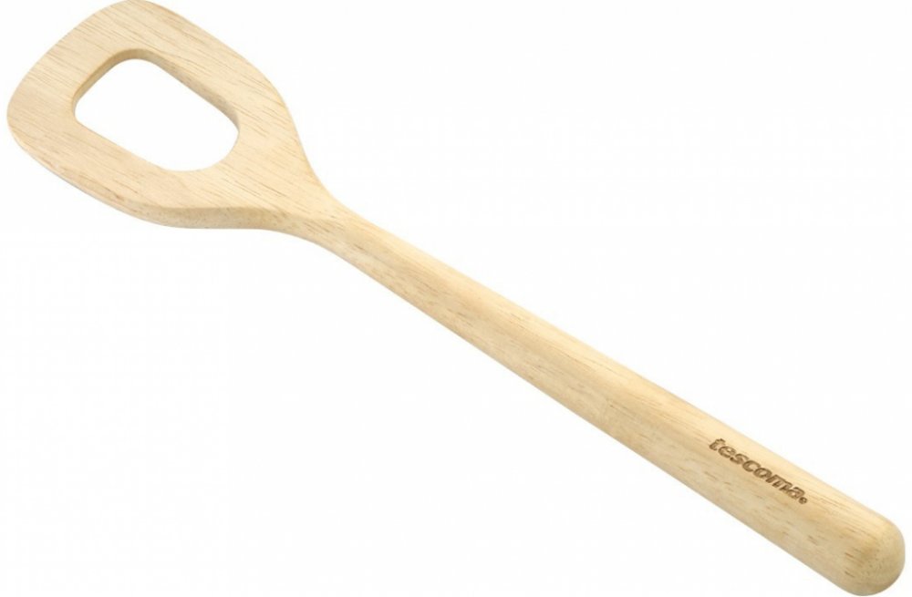 Dřevěná vařečka s otvorem, v moderním tvarovém pojetí a při zachování dokonalé funkčnosti, je vynikající pro snadné a rychlé hnětení těst.