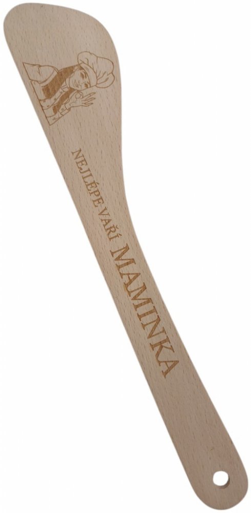 Dřevěná vařečka s gravírovaným motivem a textem: Nejlépe vaří MAMINKA, je ideálním dárkem pro všechny maminky-kuchařky.